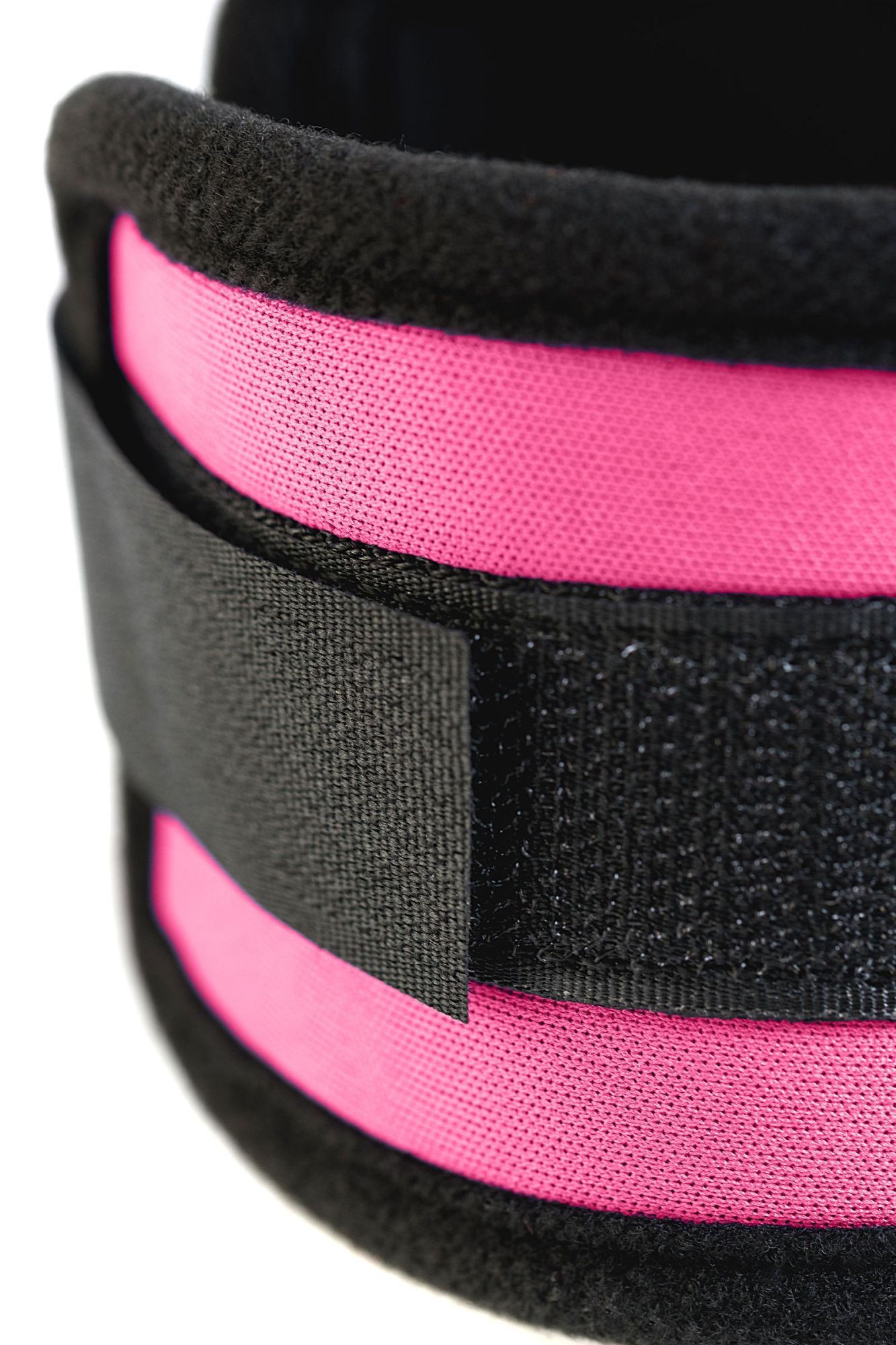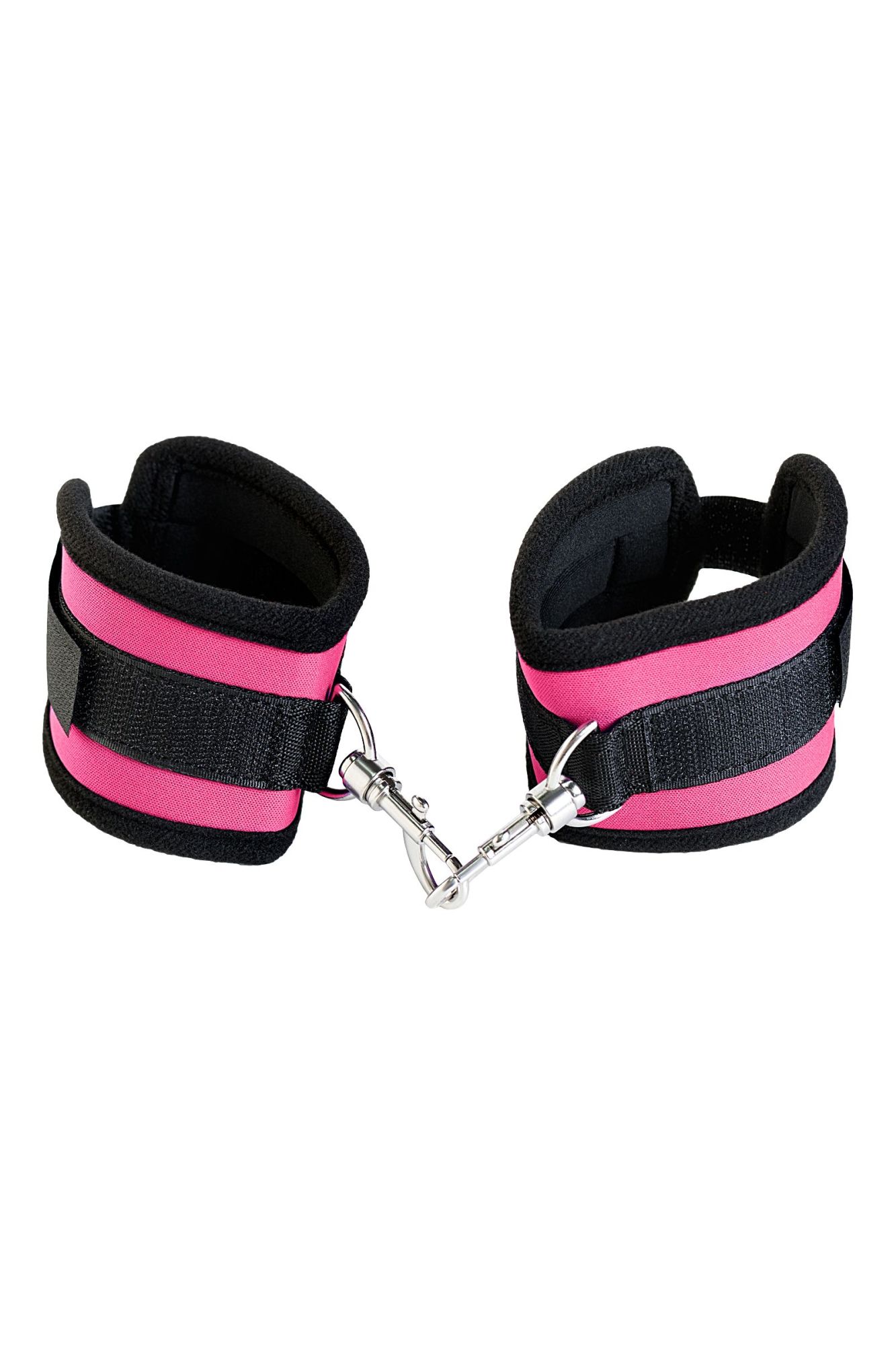 Оковы на ноги из неопрена розовые. Мягкие оковы с застежкой велкро, позволяющей максимально регулировать объем. Между собой манжеты соединены карабинами. сцепка 10см