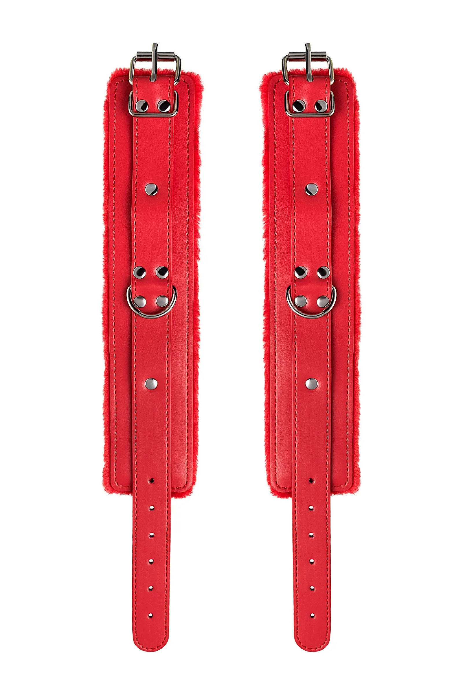 Оковы на ноги яркого красного цвета с металлической отделкой говорят вовсе не об агрессии. Эти произведения искусства говорят о страсти, которую можно проявить, но только с разрешения Доминанта. Подклад из искусственного меха делает ношение этих оков более комфортным, но расслабиться в них не получится – цепочка на карабинах сильно ограничивает свободу действий. Длина поножей позволяет использовать их практически на любой размер ног. Отрегулировать размер и силу обхвата легко с помощью ремешка и металлической пряжки. Оковы – классический предмет для игры в подчинение, обязательный для начинающих и опытных поклонников БДСМ. Дополните комплект аксессуарами - ошейником, кляпом, наручниками и продемонстрируйте что значит грубое обращение и полный контроль над свободой. Материал: PU кожа, металл Цвет: красный Длина: 27 см Ширина: 5,5 см Длина сцепки: 15,5 см