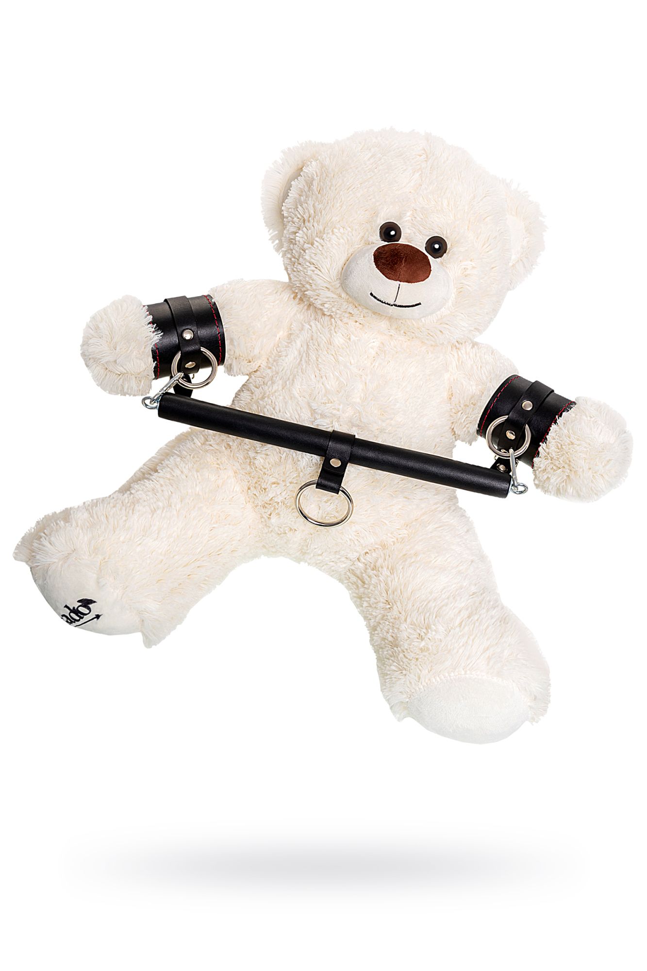 Ищете оригинальный подарок? Мишка от Pecado тот самый презент, который попадет прямо в сердце. Милый, благодаря своему внешнему виду. И будоражащий фантазию, за счёт пикантной комплектации. С помощью этого мишки можно небанально подарить аксессуары для горячих ролевых игр. Атрибут для БДСМ легко снимается и используется по назначению. Мишка изготовлен из искусственного меха, отлично набит и держит форму. Наполнен 100% качественным холлофайбером. Черная распорка с кожаными оковами изготовлена из премиальных материалов: натуральная кожа, стальная фурнитура. Комфортный размер наручников подходит как на узкое, так и на широкое запястье. Отличный подарок на предстоящие праздники, в лучших традициях классического БДСМ. • Игрушка безопасна и предназначена для взрослых. • Высота игрушки 42 см. Ширина 45 см. • Материал оков – 100% натуральная кожа. • Износостойкий, тактильно приятный материал. • Надежная высококачественная фурнитура. • Универсальный размер.