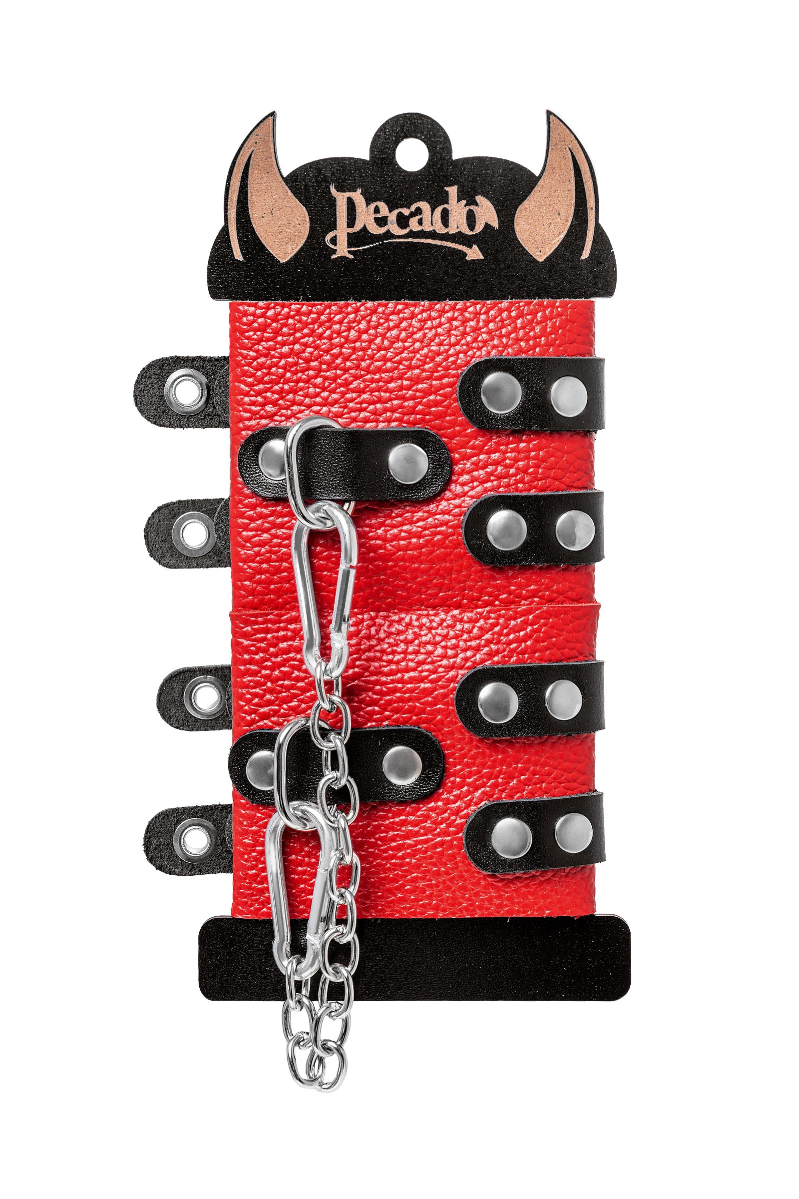 Не бойтесь своих желаний! Основатели бренда уверены: лучший способ избавиться от искушения - поддаться ему! Мягкие, красные, кожаные наручники с двумя чёрными, жёскими ремнями могут стать стильным аксессуаром, а могут послужить вашим целям по своему прямому назначению. Частичное обездвиживание и невозможность двигать руками дают вам полную власть над партнером – взрослые игры для взрослых. Наличие двух колец и карабинов, соединенных между собой металлической цепочкой, позволяет использовать изделие как раздельно – аксессуар-манжеты, так и как наручники для фиксации. К широким металлическим кольцам также можно присоединить и другие аксессуары при помощи карабинов. Благодаря универсальному размеру наручники могут использоваться и мужчинами, и женщинами. Pecado BDSM – российский бренд, использующий высококачественные материалы и надежную, проверенную временем фурнитуру. Все изделия изготавливаются вручную из натуральной кожи, безопасный и экологичный материал не оставляет повреждений на запястьях. Натуральная кожа, металлические крепления и ремешки дают уверенность в надежной фиксации, устойчивости к механическим нагрузкам и долговременном использовании. ● 100% натуральная кожа. ● Ручная работа. ● Износостойкий, тактильно приятный материал. ● Надежная высококачественная фурнитура. ● Универсальный размер. ● Ширина манжет - 7см. Длина манжет - 18см. Длина сцепки - 17см.