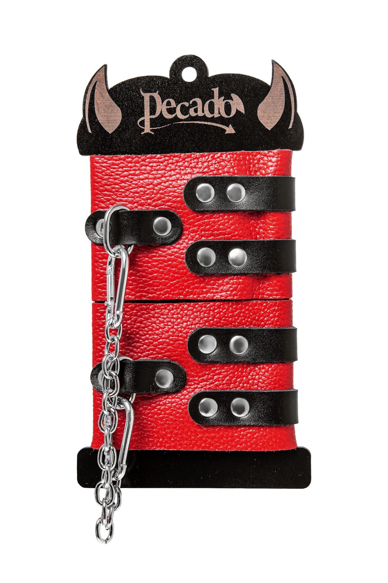 Мягкие оковы с двумя жёсткими ремешками от Pecado помогут обездвижить партнера во время сексуальных прелюдий или жестких БДСМ-играх. Оковы изготовлены полностью из красной, натуральной кожи.Ремешки выполнены из чёрной жёсткой кожи, украшены люверсами. Выделка материала произведена вручную. Ремешки и широкая манжета хорошо держат форму: не тянутся и не мнутся. Качественная металлическая фурнитура добавляет лоска изделию, а аромат натуральной кожи повышает градус возбуждения. Благодаря широкому запасу регулировок, можно подобрать необходимый обхват. Аксессуар удобно застегивать и легко расстегивать. При правильном использовании не оставляет следов на теле и не доставляет дискомфорта. Манжеты оков соединяется между собой помощью двух карабинов и съемной стальной цепочки. Подходит и для женских, и для мужских ног. ● 100% натуральная кожа. ● Ручная работа. ● Износостойкий, тактильно приятный материал. ● Надежная высококачественная фурнитура. ● Универсальный размер. ● Ширина манжет - 7см. Длина манжет - 25см. Длина сцепки - 20см.