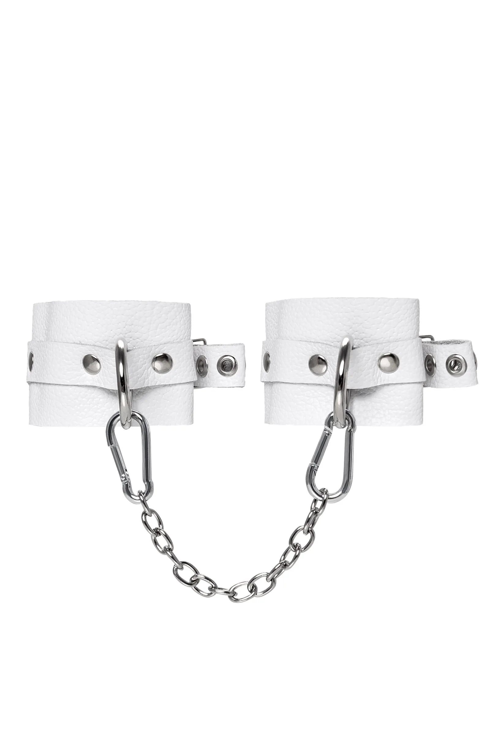 Самый мягкие оковы из всей линейки российского производителя Pecado. Сексуальный атрибут изготовлен из безопасной и натуральной кожи. Насыщенно белый цвет и терпкий аромат материала повышают градус возбуждения в процессе ролевых игр. Манжеты и ремешки девайся очень тактильно приятные. Они не мнутся, не тянутся и обладают повышенной износостойкостью. Вся фурнитура высокого качества. На тонких ремешках имеются отверстия с люверсами, для подбора нужного обхвата. Благодаря стальной застежке аксессуар легко застегивается и расстегивается. Между собой оковы присоединяются с помощью карабинов и короткой цепочки. При необходимости ее можно снять и заменить на более длинный вариант. Используется для того, чтобы обездвижить партнера и зафиксировать ноги в необходимом положении. Подходит как опытным, так и начинающим парам. ● 100% натуральная кожа. ● Ручная работа. ● Износостойкий, тактильно приятный материал. ● Надежная высококачественная фурнитура. ● Универсальный размер. ● Длина манжет – 25 см, ширина манжет - 5,5 см, длина сцепки – 24 см.