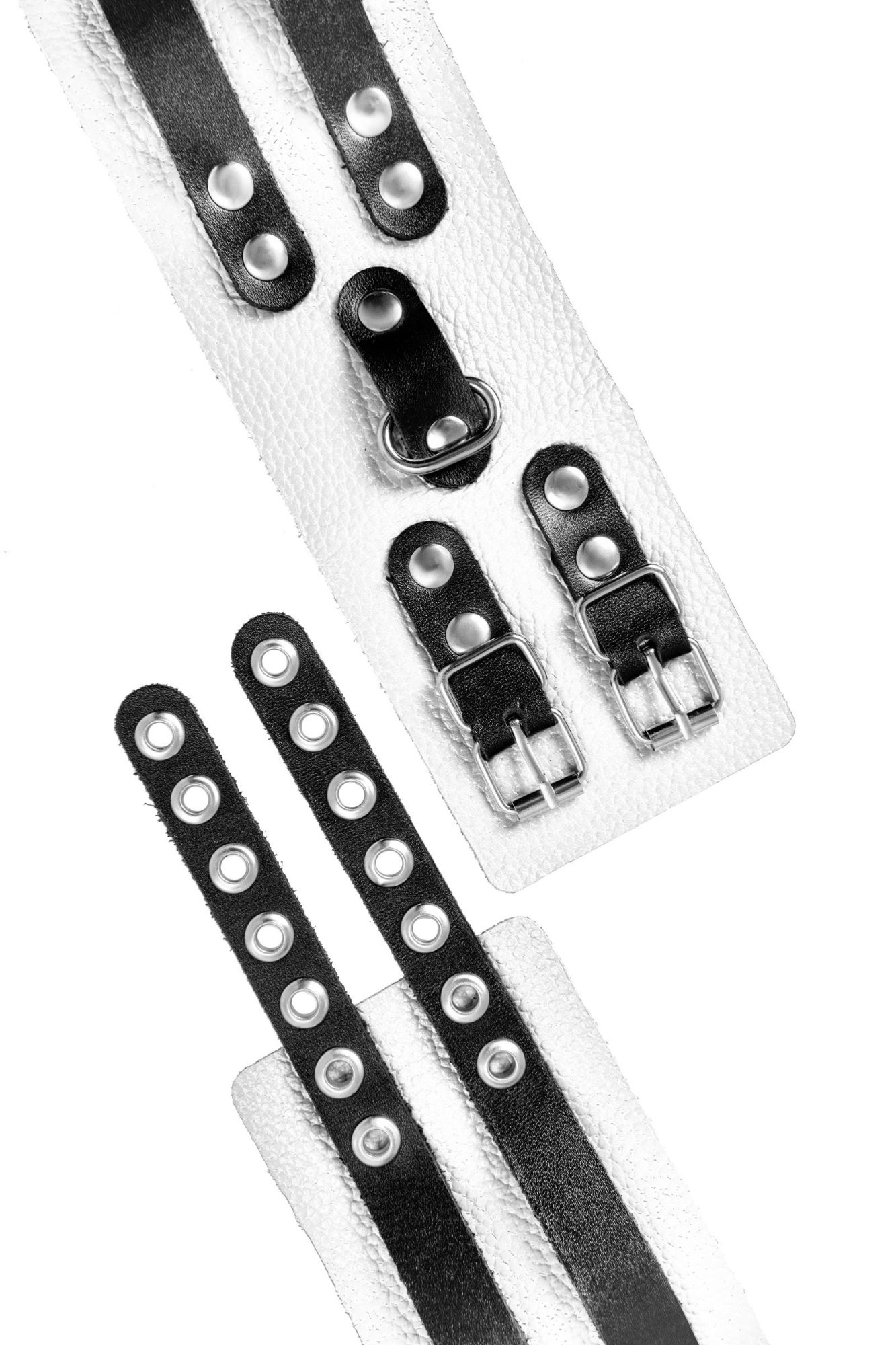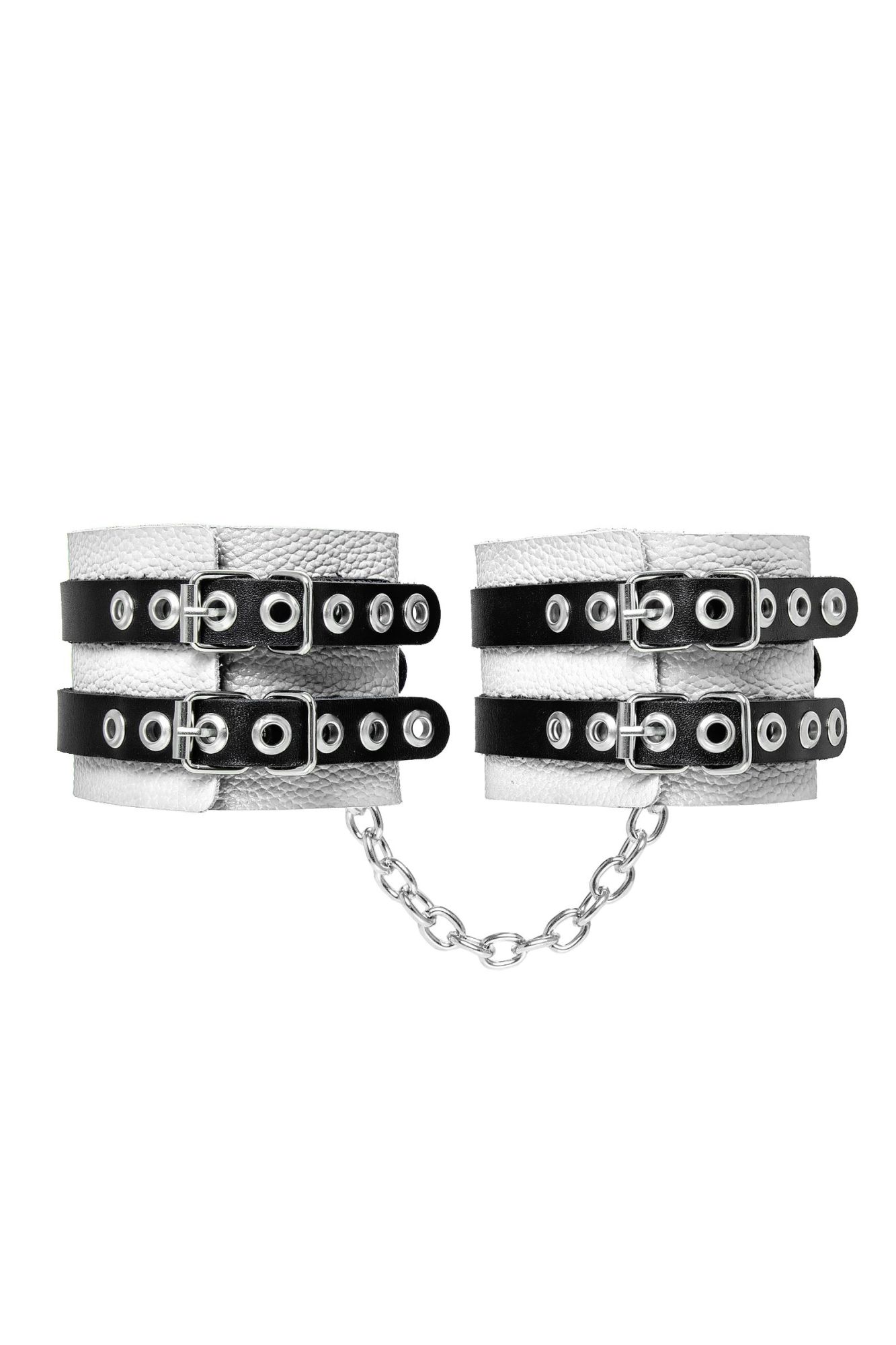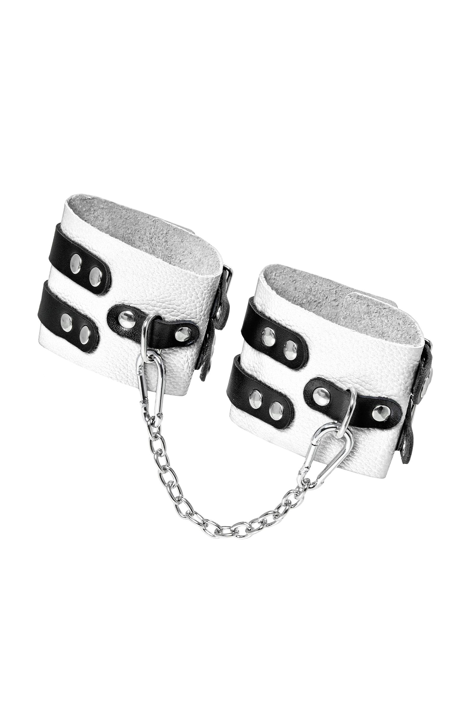 Мягкие оковы с двумя жёсткими ремешками от Pecado помогут обездвижить партнера во время сексуальных прелюдий или жестких БДСМ-играх. Оковы изготовлены полностью из белой, натуральной кожи. Ремешки выполнены из чёрной жёсткой кожи, украшены люверсами. Выделка материала произведена вручную. Ремешки и широкая манжета хорошо держат форму: не тянутся и не мнутся. Качественная металлическая фурнитура добавляет лоска изделию, а аромат натуральной кожи повышает градус возбуждения. Благодаря широкому запасу регулировок, можно подобрать необходимый обхват. Аксессуар удобно застегивать и легко расстегивать. При правильном использовании не оставляет следов на теле и не доставляет дискомфорта. Манжеты оков соединяются между собой помощью двух карабинов и съемной стальной цепочки. Подходит и для женских, и для мужских ног. ● 100% натуральная кожа. ● Ручная работа. ● Износостойкий, тактильно приятный материал. ● Надежная высококачественная фурнитура. ● Универсальный размер. ● Ширина манжет - 7см Длина манжет - 25см Длина сцепки - 20см