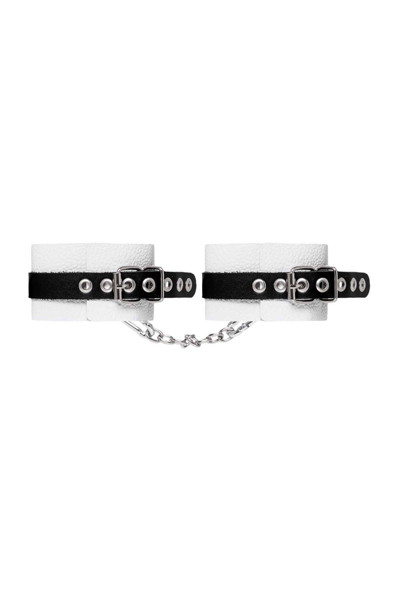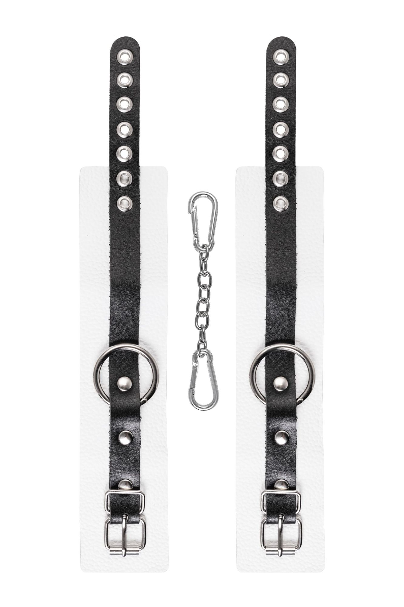 Мягкие оковы с жёсткими ремешками от Pecado помогут обездвижить партнера во время сексуальных прелюдий или жестких БДСМ-играх. Наручники изготовлены полностью из белой, натуральной кожи. Ремешки выполнены из чёрной жёсткой кожи, украшены люверсами. Выделка материала произведена вручную. Ремешки и широкая манжета хорошо держат форму: не тянутся и не мнутся. Качественная металлическая фурнитура добавляет лоска изделию, а аромат натуральной кожи повышает градус возбуждения. Благодаря широкому запасу регулировок, можно подобрать необходимый обхват. Аксессуар удобно застегивать и легко расстегивать. При правильном использовании не оставляет следов на теле и не доставляет дискомфорта. Манжеты оков соединяется между собой помощью двух карабинов и съемной стальной цепочки. Подходит и для женских, и для мужских ног. ● 100% натуральная кожа. ● Ручная работа. ● Износостойкий, тактильно приятный материал. ● Надежная высококачественная фурнитура. ● Универсальный размер. ● Ширина манжет - 5,5см Длина манжет - 25см Длина сцепки - 24см