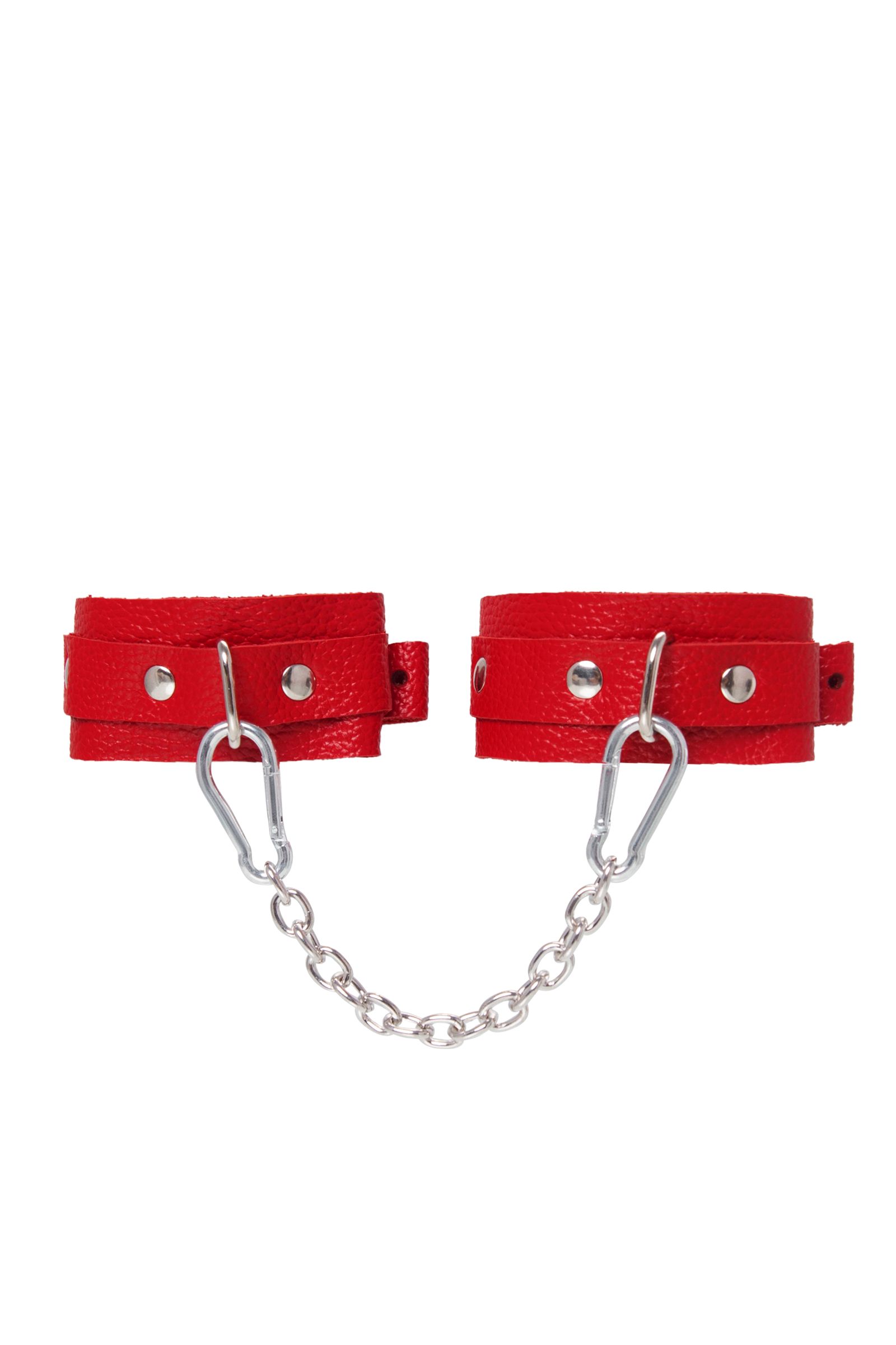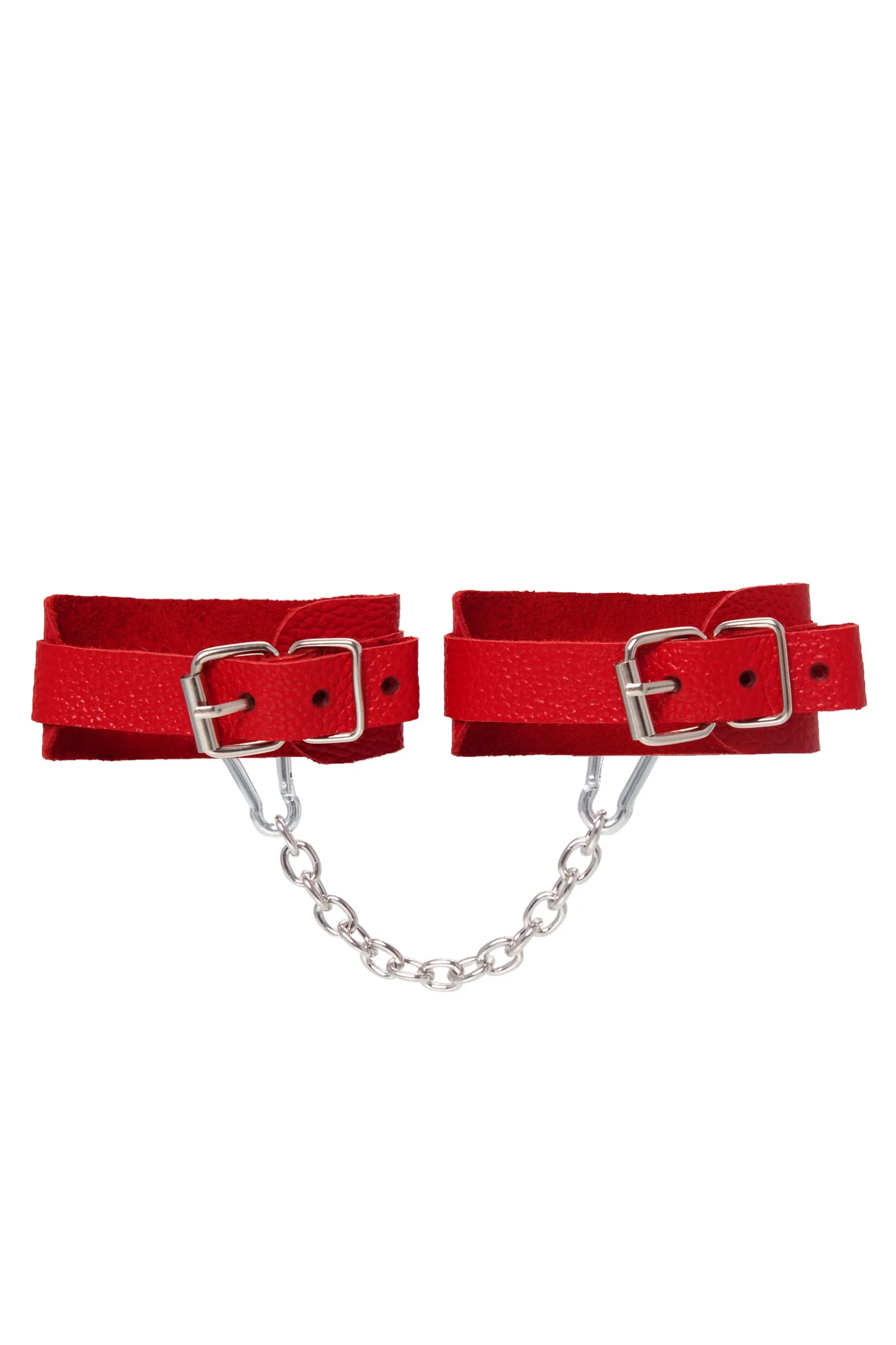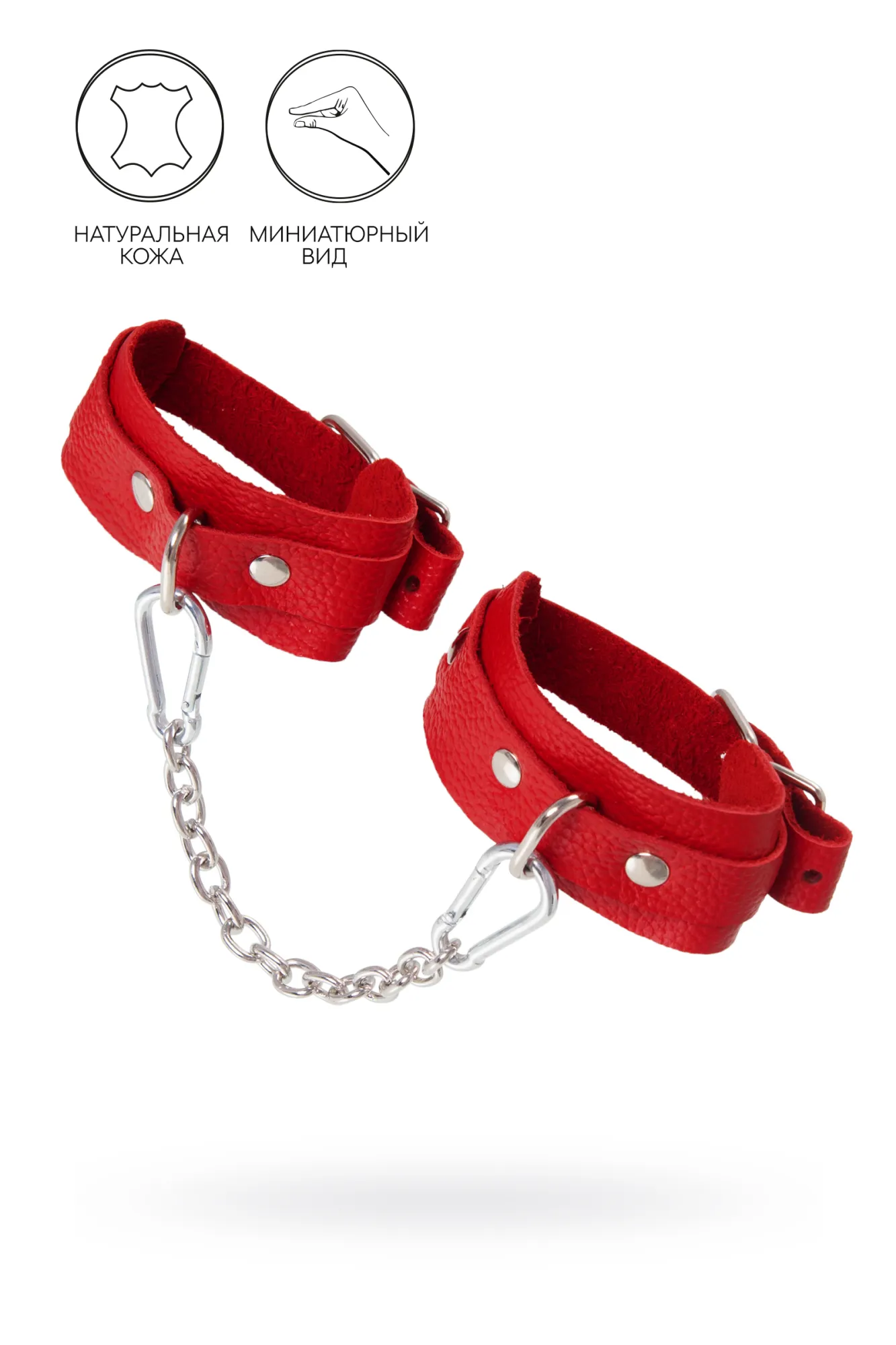 Оковы мини Pecado BDSM, со скруглёнными углами, натуральная кожа, красные