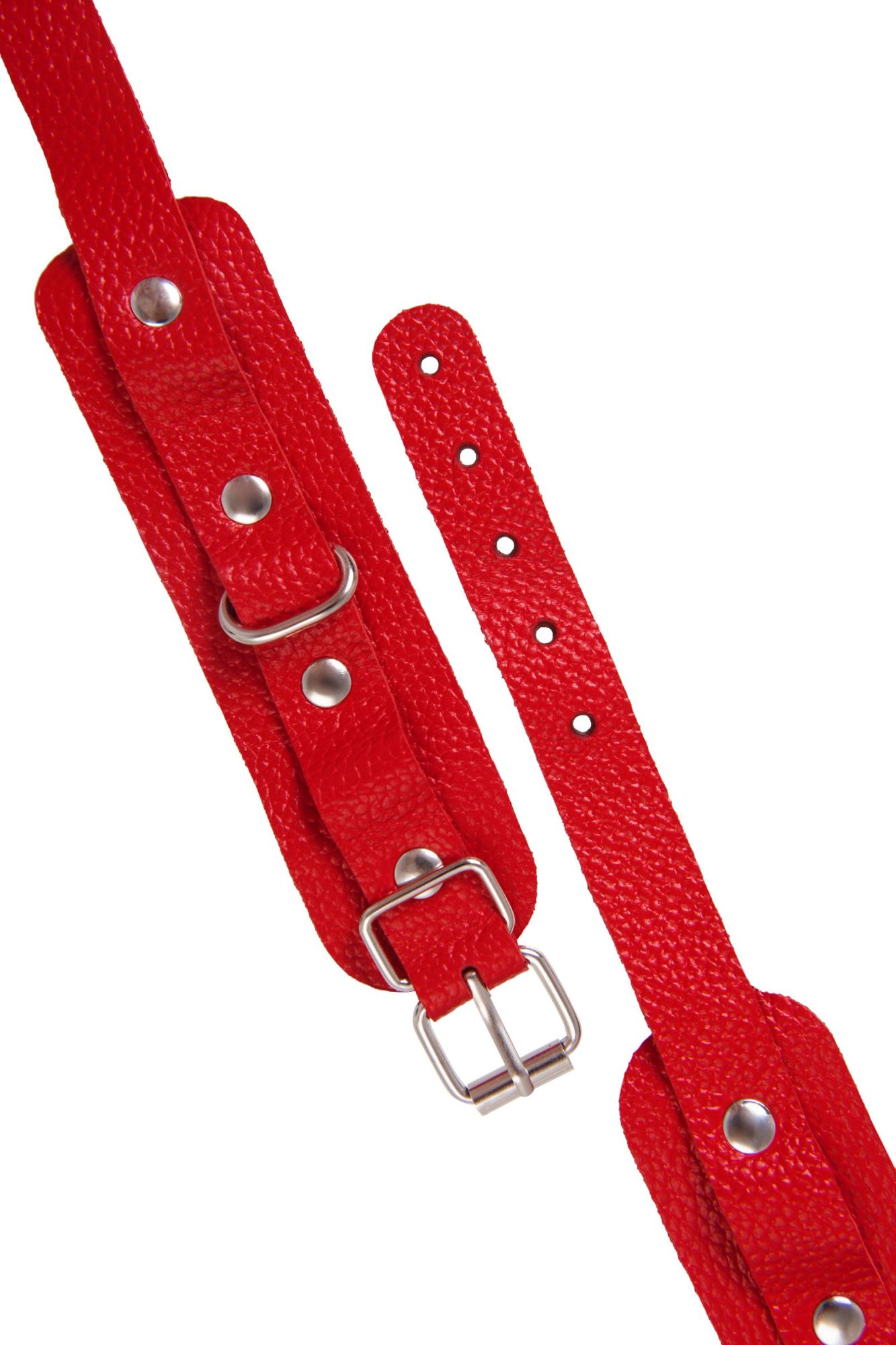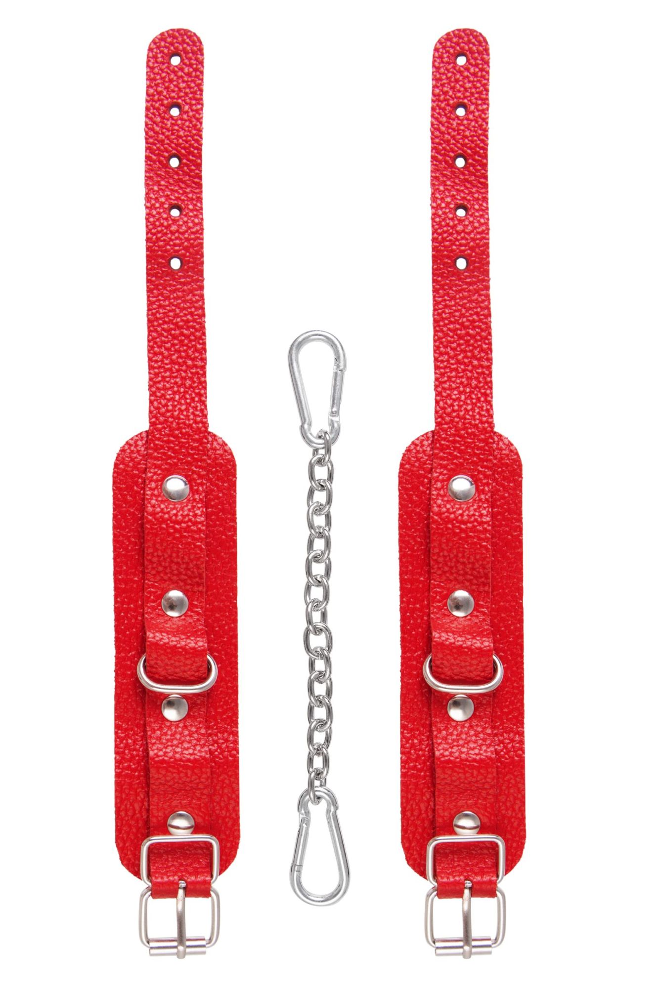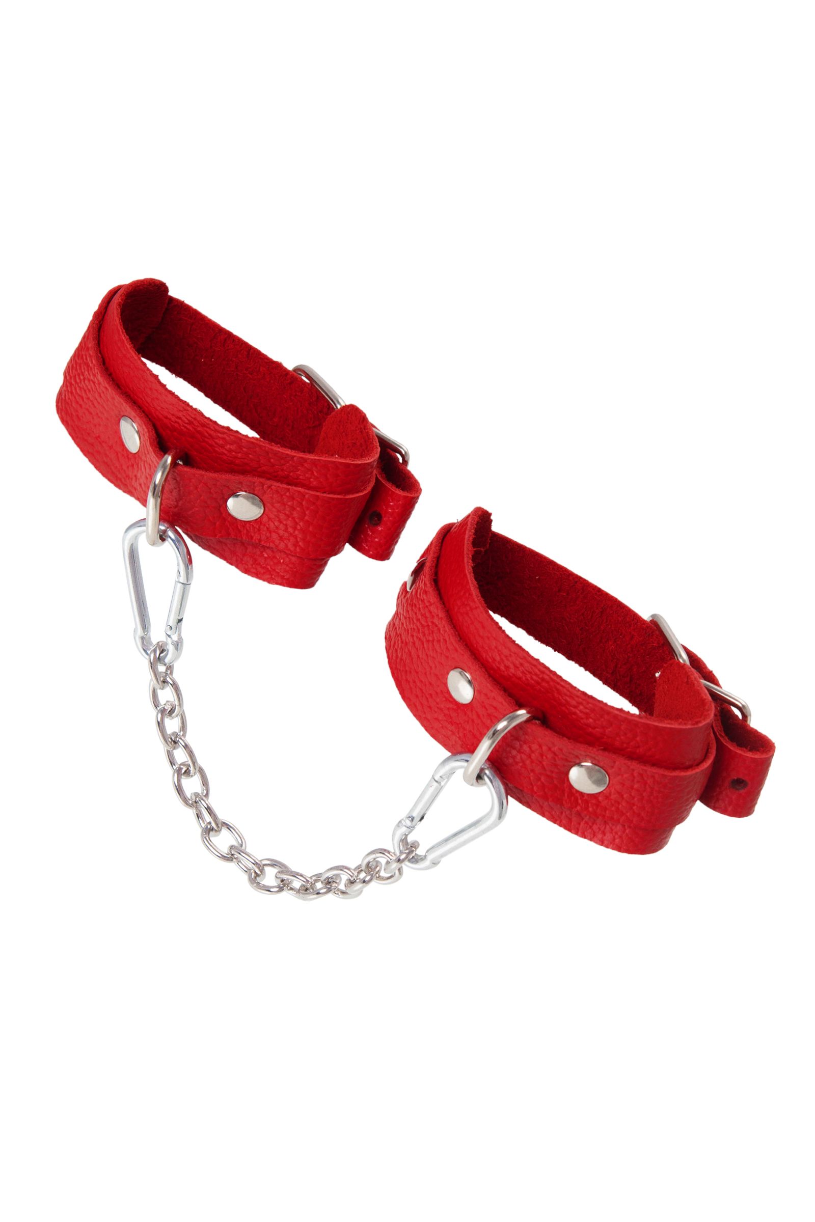 Оковы мини Pecado BDSM, со скруглёнными углами, натуральная кожа, красные