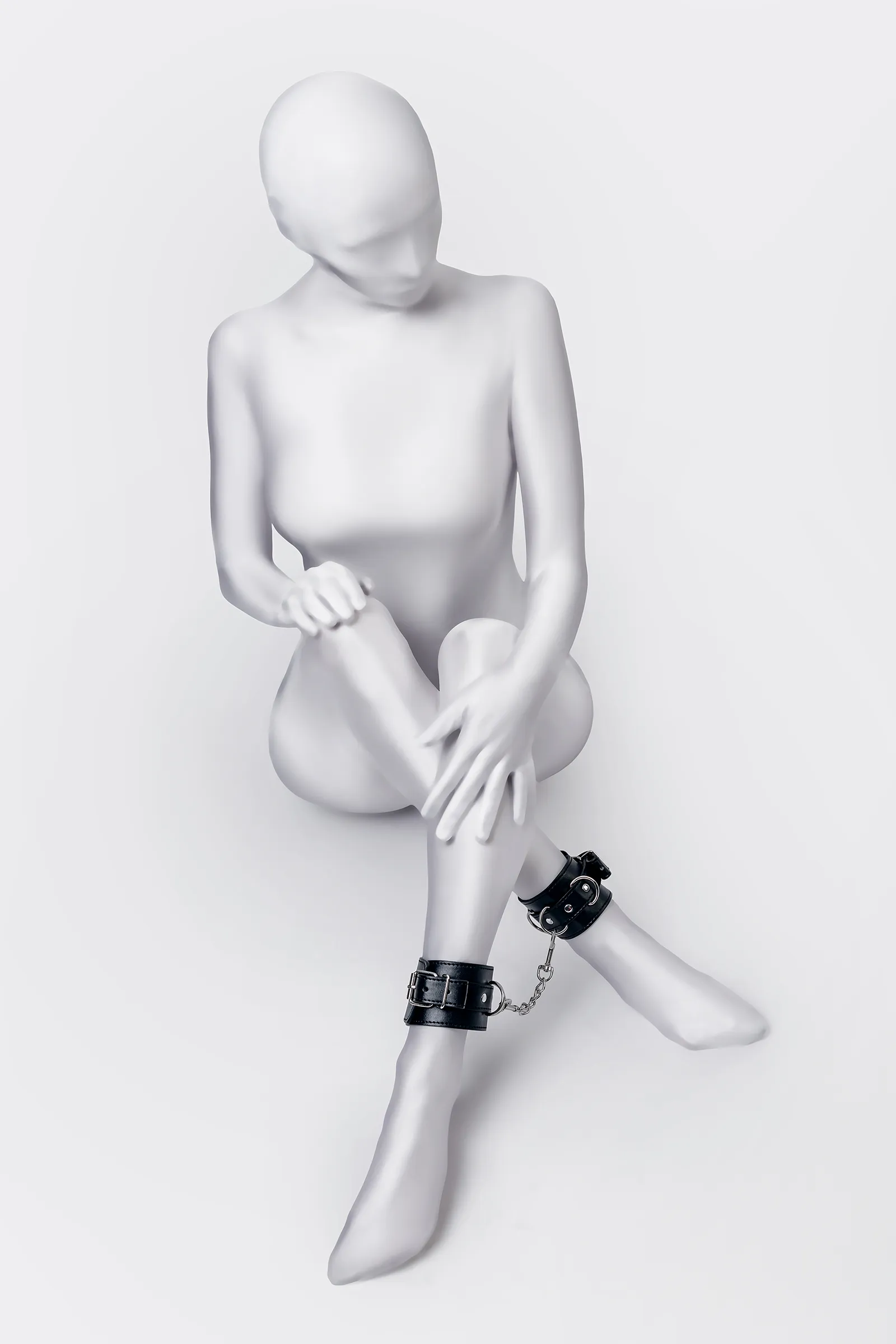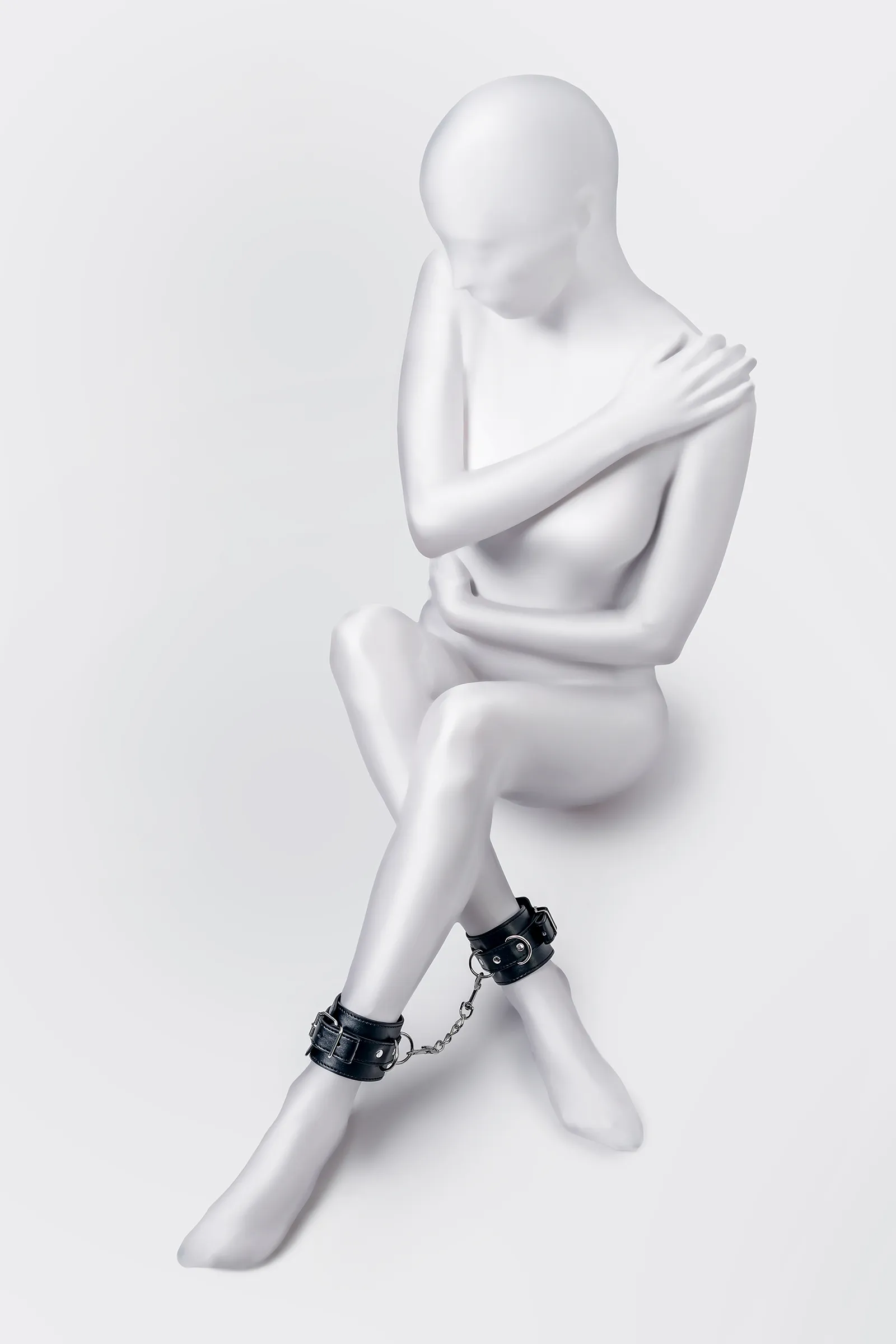 Черные оковы с металлической отделкой – брутальные ограничители свободы. К тому же, они на самом деле весьма жестко обхватывают ноги и надежно соединяют их между собой цепочкой на карабинах. Три кольца для крепления дают возможность дополнить поножи аксессуарами и использовать различные варианты фиксации. Длина оков позволяет использовать их практически на любой размер ног. Отрегулировать размер и силу обхвата легко с помощью ремешка и металлической пряжки. Черные оковы с металлической отделкой – это стиль и функционал. Теперь Доминант покажет, что значит грубое обращение и полный контроль над свободой. Материал: PU кожа, металл Цвет: черный Длина: 26,5 см Ширина: 6 см Длина сцепки: 15,5 см