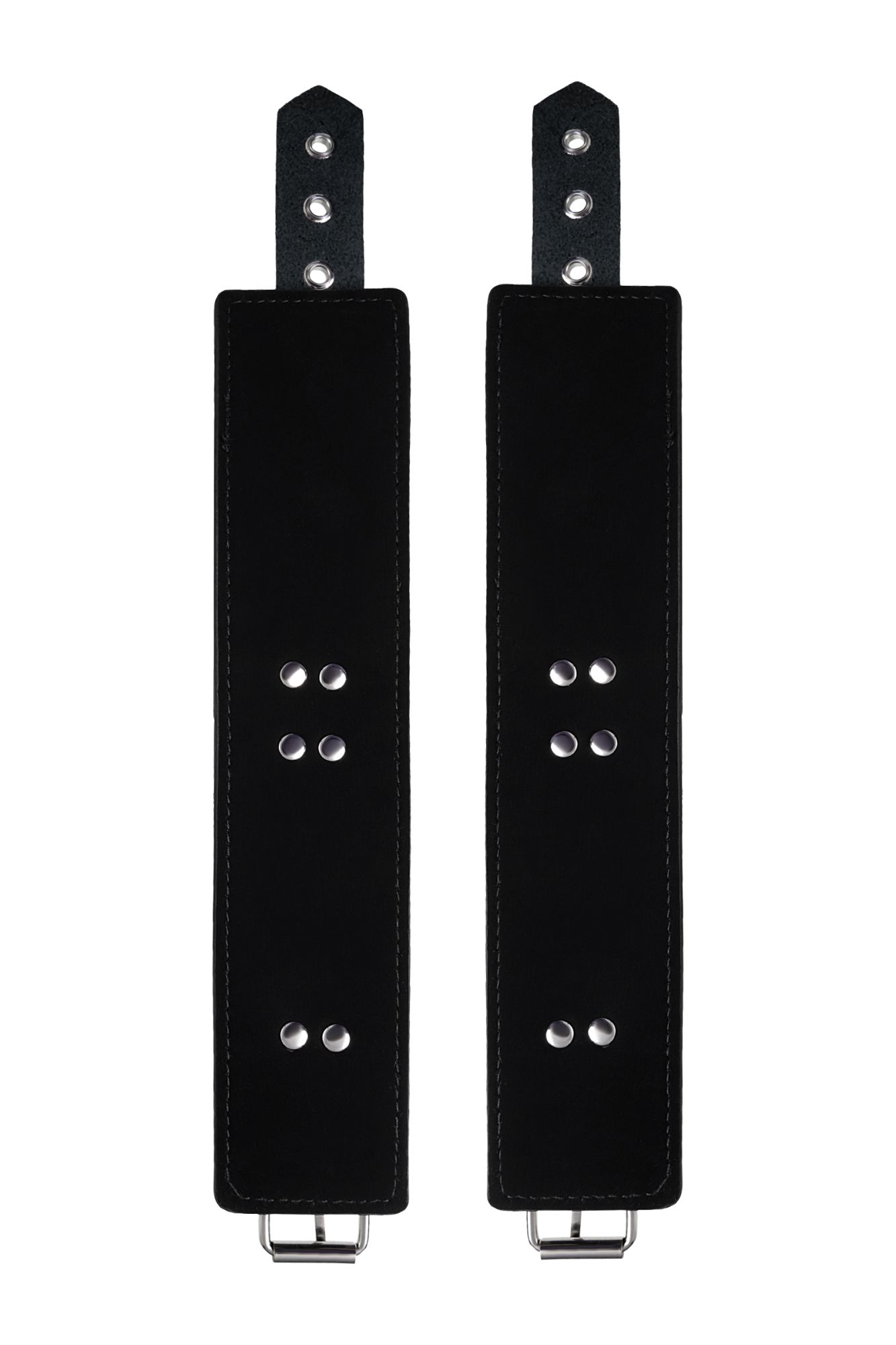 Изготавливаются из натуральной кожи с велюровой подкладой. При изготовлении использована фурнитура с никелевым покрытием. Между слоем основы и подкладой проложена мягкая прокладка. Соединяются между собой коротким ремешком с двумя карабинами на концах. Не нарушают кровообращение, надёжно фиксируются на запястьях. Размер универсальный.