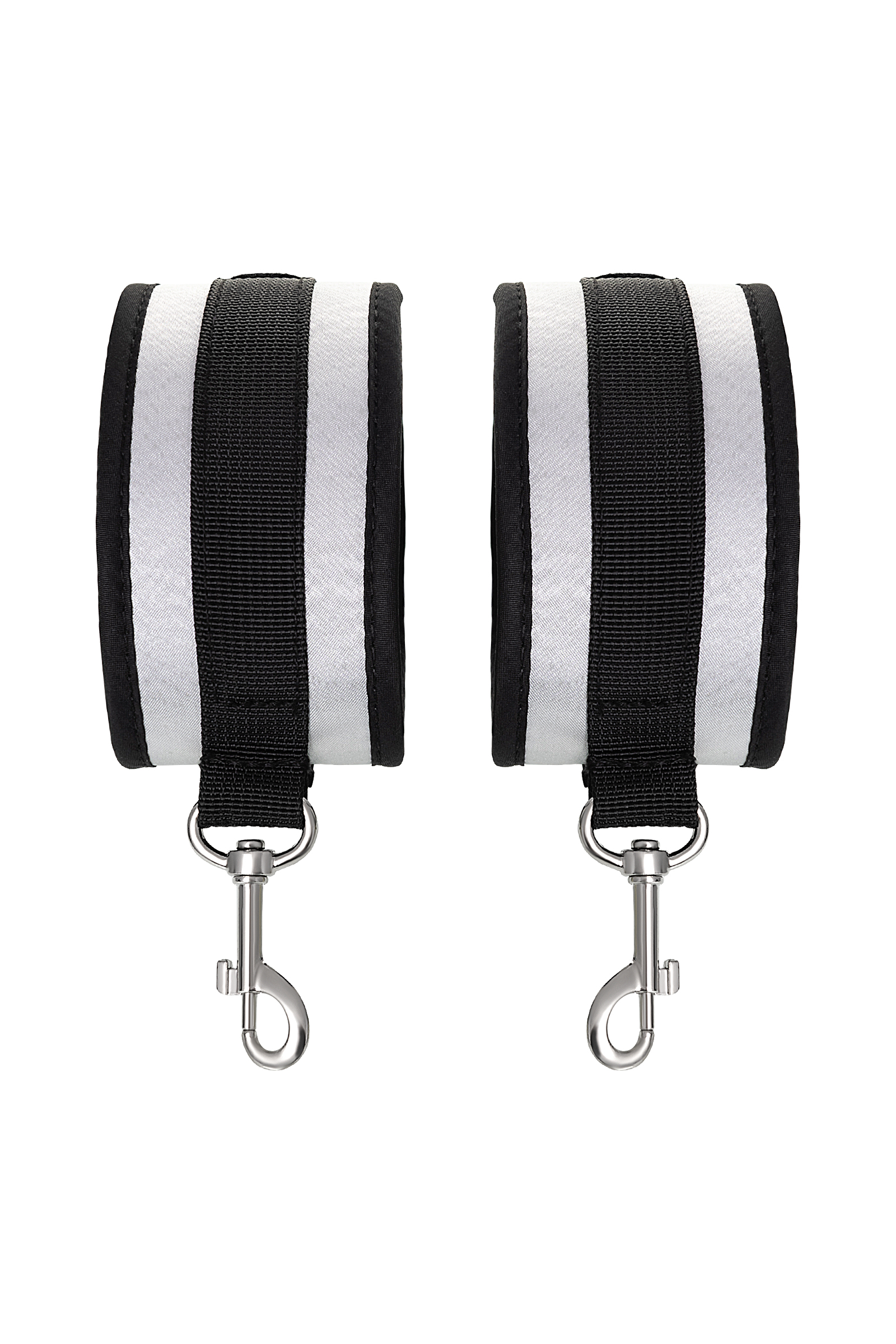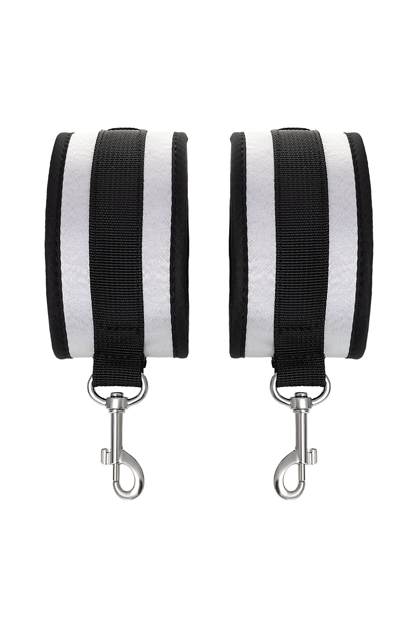 Оковы — классический предмет для игры в подчинение, обязательный для начинающих и опытных поклонников БДСМ. Блестящий во всех смыслах аксессуар для ограничения свободы – сатиновый материал поблескивает, когда на него падает свет. Необычное сочетание серебристого и черного, совсем нехарактерное для классического исполнения аксессуаров в стиле БДСМ, придает изюминку и новизну. Подчиненный с таким аксессуаром выглядит неотразимым. Застежка велкро позволяет зафиксировать ноги любого размера. Между собой поножи скрепляются карабинами, практически не оставляя свободы действий. Никакого послабления, только полное подчинение своему Доминанту. Используйте дополнительно цепочку для расширенных возможностей фиксации положения ног. Начните игру в подчинение с этим аксессуаром, и вы поймете, как развивать свою чувственность с помощью ограничения свободы одного из партнеров. Дополните комплект аксессуарами — ошейником, кляпом, наручниками и продемонстрируйте что значит грубое обращение и полный контроль над свободой. Материал: полиэстер, полипропилен Цвет: черно-серебристый Длина: 28,5 см Ширина: 5,5 см Длина сцепки: 8 см