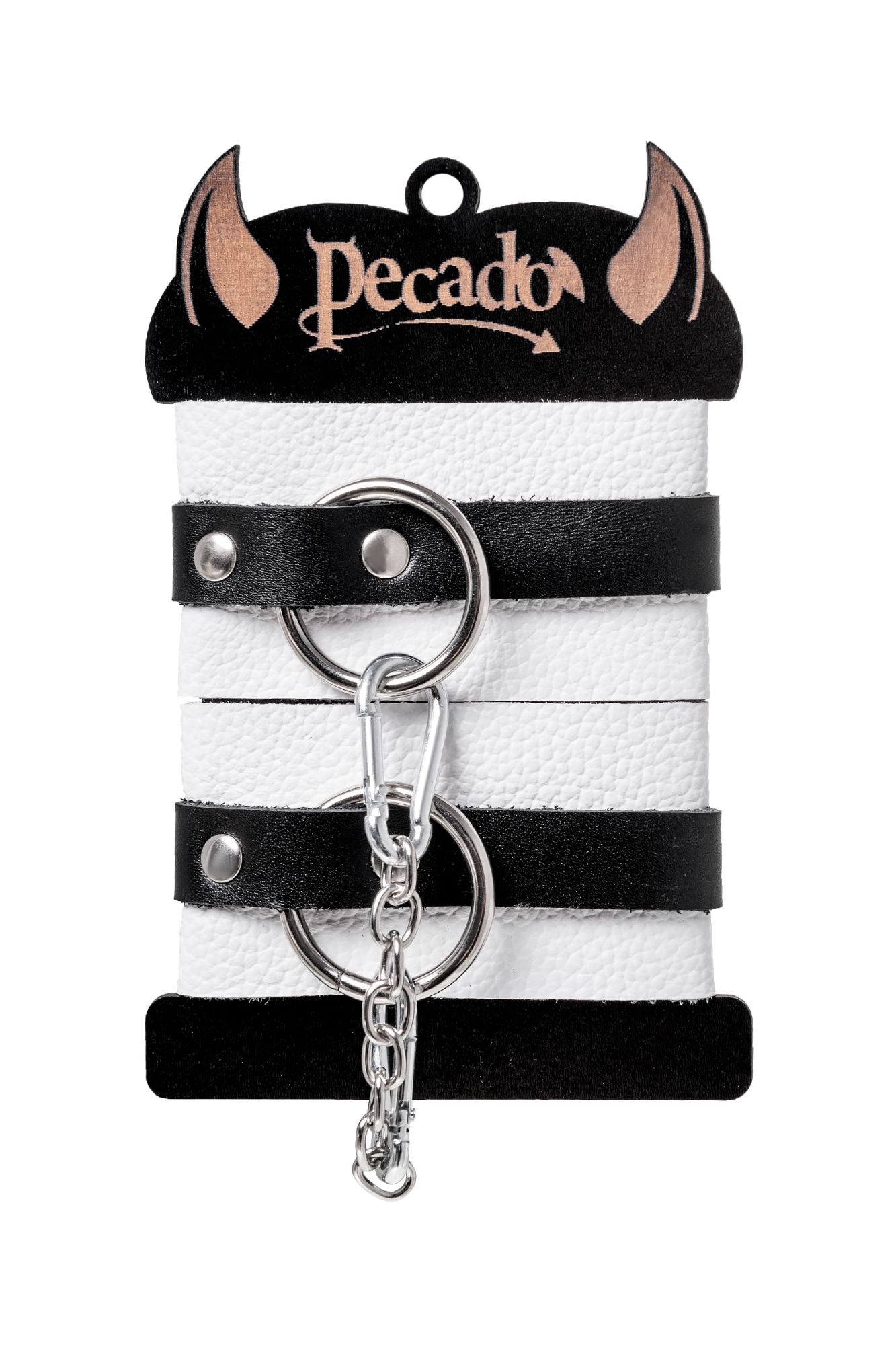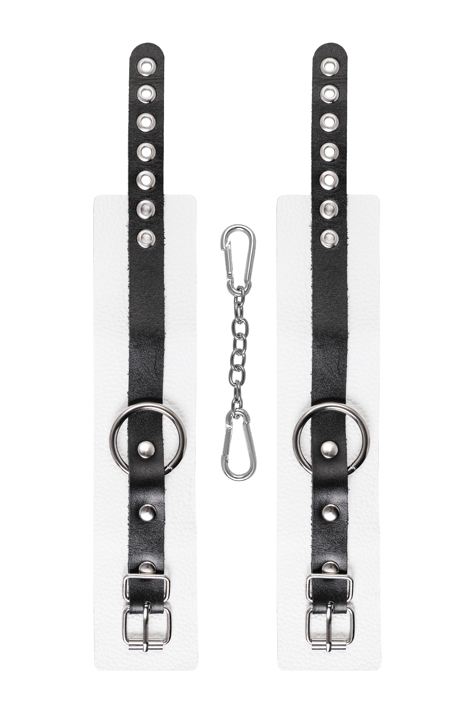 Оковы Pecado BDSM, мягкие, с одним ремешком, с люверсами, натуральная кожа, бело-чёрные