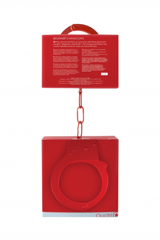 Металлические наручники Beginner's Handcuffs - специализированное приспособление для жесткой и надежной фиксации и обездвиживания партнера при эротических ролевых играх и практиках БДСМ. Классические металлические наручники могут открываться как при помощи ключей, входящих в комплект, так и с помощью механизма непосредственно на них. Кольца соединены между собой короткой неэластичной сцепкой.