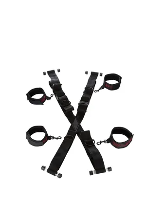 Фиксация на дверь Scandal Over The Door Cross из чувственной премиум коллекции эротических аксессуаров Scandal. Воплощение фантазий в спальне. Манжеты и оковы на липучке с внутренней стороны отделаны приятным бархатистым материалом, исключающим нежелательный дискомфорт и раздражение кожи. С внешней стороны фиксаторы декорированы дизайнерским рисунком из блестящих красных нитей. Прочный, полностью регулируемые ремни при помощи пластиковых колб фиксируются к двери. Манжеты и оковы крепятся к металлическим кольцам карабинами. Манжеты и оковы регулируются до 36,75 см. Материал: Полиэстер, Акрил, Никель. Производитель: California Exotic Novelties.