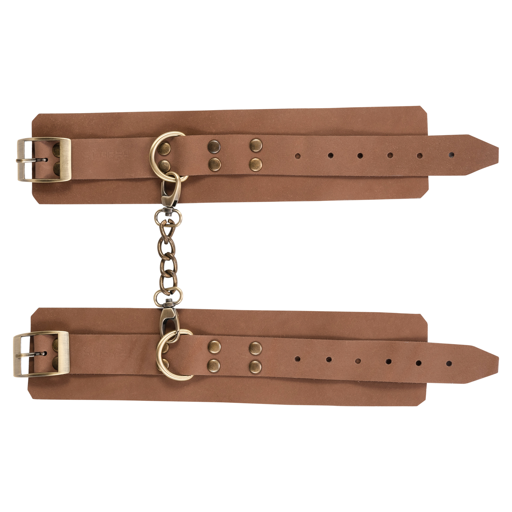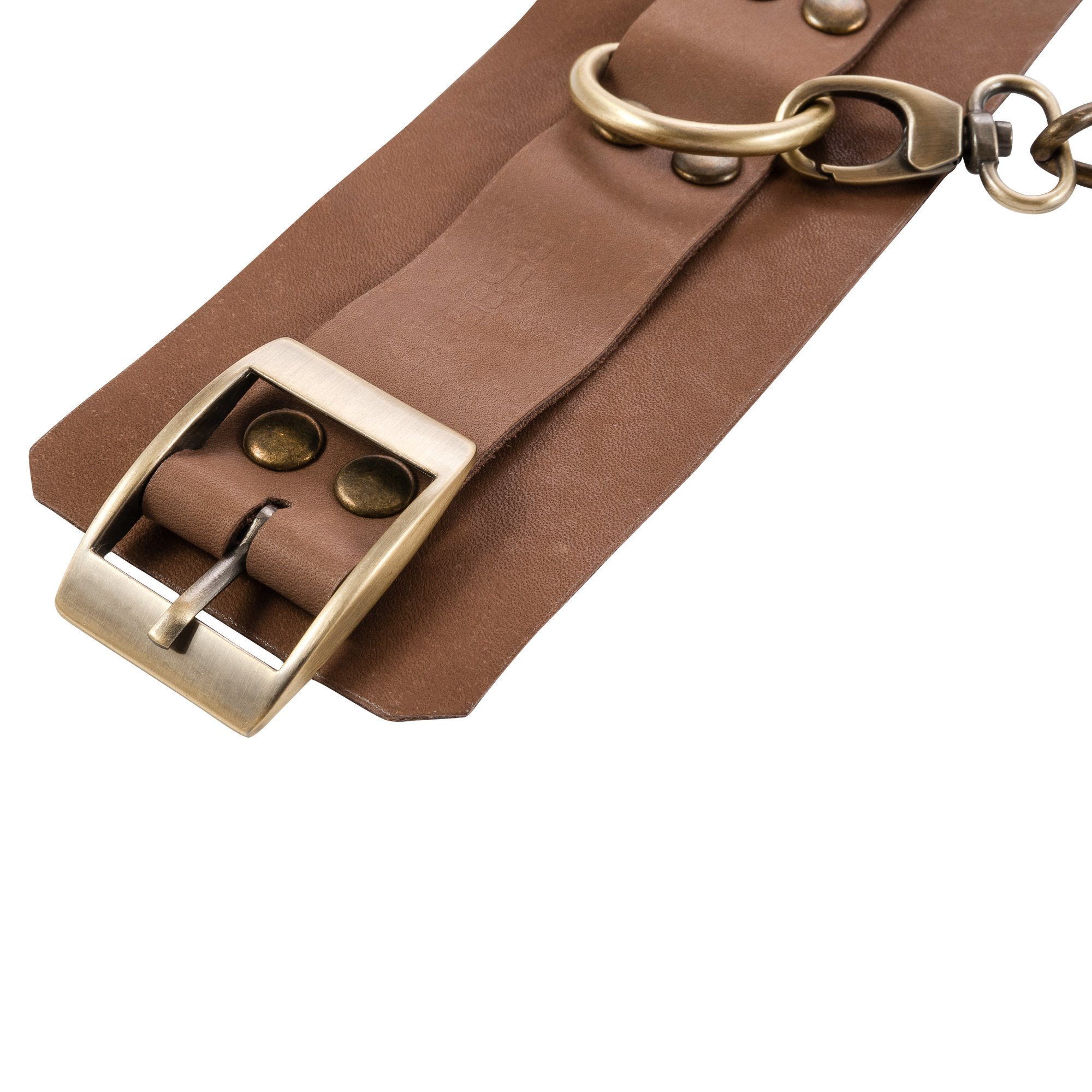 Взять ситуацию под контроль и избавить партнера от необходимости решать помогут шикарные кожаные наручники из коллекции Re-belts. Они будут мягко сжимать запястья, позволяя чувствовать себя комфортно, но не давая возможности пошевелиться. Закрепите руки партнера сзади для максимального обездвиживания, либо спереди, сохраняя минимальную подвижность. Характеристики: цвет- коричневый, материал- кожа, длина- 22,5 см, ширина- 6 см. Упаковка: картонная коробка с принтом.