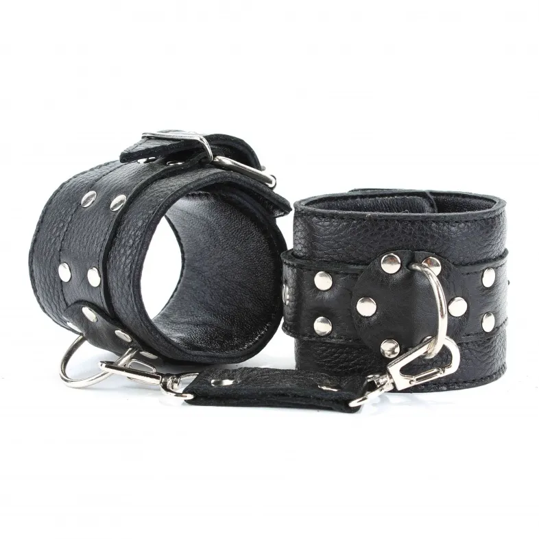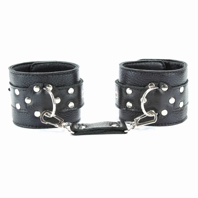 Кожаные наручники 51004ars высокого качества позволят очень надежно пристегнуть Вашего партнера к спинке стула и доминировать как угодно. Мягкая подложка плотно удерживает БДСМ атрибут, а крепкая пряжка плотно зафиксирует даже самые миниатюрные ручки. Кожаные наручники не дадут партнеру ускользнуть от Вас. БДСМ атрибут по верху черной кожи украшен стальными кнопками. Пробуждает невероятные эротические фантазии. Характеристики наручники из кожи с пряжкой 51004ars: цвет – красный с черным, материал – кожа, металл, длина – 35 см, диаметр – 5 см, длина цепочки – 15 см, производитель – BDSM Арсенал (Россия).