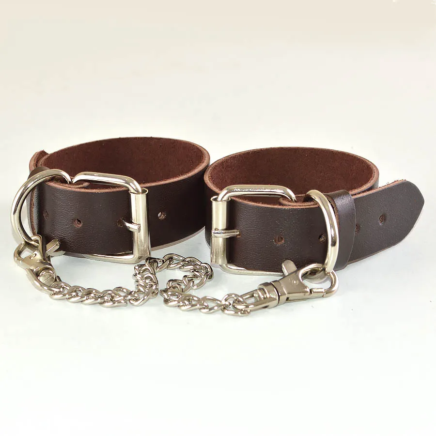 Оковы изготовлены из натуральной кожи. Регулируются пряжкой, имею цепочку с карабинами.
