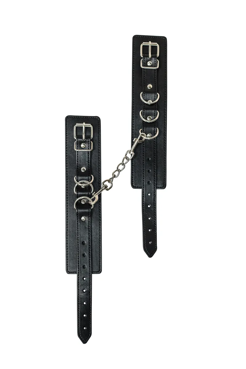 Обезоружить партнера и показать ему, кто сегодня руководит сценарием, можно с помощью одного простого приспособления - поножей. Натуральная ПВХ-материал нежно захватывает ногу в приятный плен, подчеркивая изысканность и пикантность ситуации, и дарит совершенно новые ощущения, связанные с невозможностью полноценно двигаться. Если же жертвой сегодня будете не Вы, то сможете вдоволь насладиться и поиграть с каждой частью тела своего пленника. Поножи очень прочные, поэтому Вы можете прикрепить их к любому элементу мебели, возле которого будет разгораться ваша страстная игра. Общая длина: 29 см, Ширина: 6 см.
