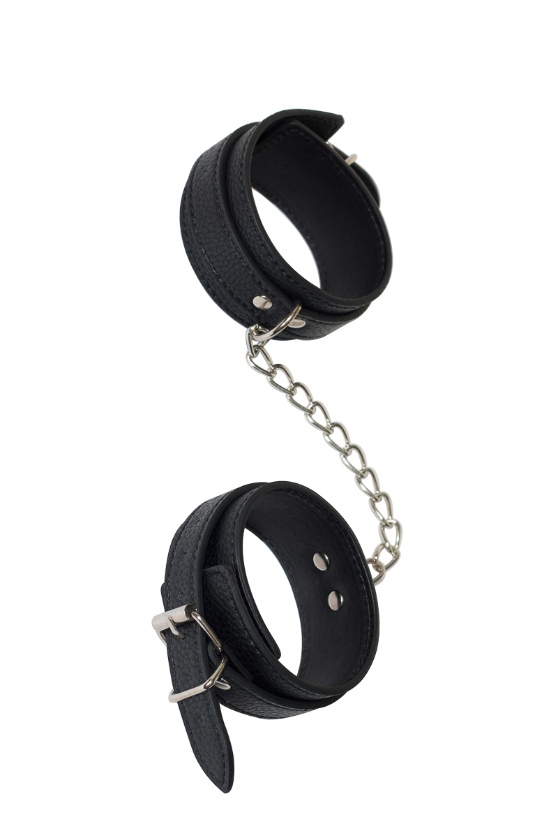 Обезоружить партнера и показать ему, кто сегодня руководит сценарием, можно с помощью одного простого приспособления - поножей. Натуральная ПВХ-материал нежно захватывает ногу в приятный плен, подчеркивая изысканность и пикантность ситуации, и дарит совершенно новые ощущения, связанные с невозможностью полноценно двигаться. Если же жертвой сегодня будете не Вы, то сможете вдоволь насладиться и поиграть с каждой частью тела своего пленника. Поножи очень прочные, поэтому Вы можете прикрепить их к любому элементу мебели, возле которого будет разгораться ваша страстная игра. Общая длина: 32,5 см, Ширина: 4 см.