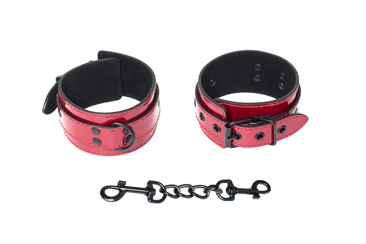 Обезоружить партнера и показать ему, кто сегодня руководит сценарием, можно с помощью одного простого приспособления - поножей. Натуральная ПВХ-материал нежно захватывает ногу в приятный плен, подчеркивая изысканность и пикантность ситуации, и дарит совершенно новые ощущения, связанные с невозможностью полноценно двигаться. Если же жертвой сегодня будете не Вы, то сможете вдоволь насладиться и поиграть с каждой частью тела своего пленника. Поножи очень прочные, поэтому Вы можете прикрепить их к любому элементу мебели, возле которого будет разгораться ваша страстная игра. Общая длина: 37 см, Ширина: 5 см.