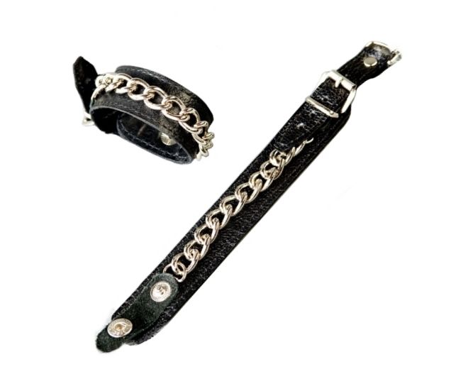 Такой стильный и дерзкий аксессуар от компании Подиум подойдет для тех, кто предпочитает игры с элементами БДСМ и любит экспериментировать со своим образом. Напульсники выполнены из натуральной кожи черного цвета и декорированы блестящими металлическими цепочками. Ремешки регулируются по размеру. Дополните свой образ жесткого господина или покорного раба с помощью данного аксессуара и Вы будете выглядеть очень эффектно и возбуждающе. Также их можно носить и в повседневной жизни, чтобы подчеркнуть свой уникальный стиль.