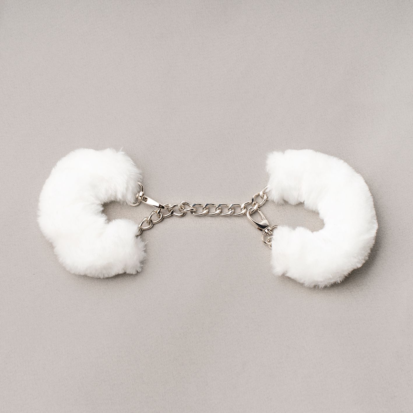 Универсальные наручники со съемными меховыми чехлами. Соединены алюминиевой цепочкой с большими звеньями. Возможна регулировка под любой размер запястья. Теперь можно очен ь легко и быстро как отстегнуть, так и пристегнуть партнера.