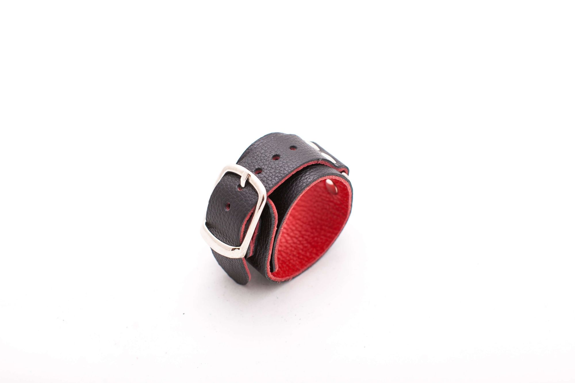 Эти черно-красные кожаные наручники – эксклюзивная модель в нашем мультибрендовом магазине. Ширина наручников составляет 4 см, соединены, с помощью металлических карабинов. Данный девайс не имеет подкладки, но, несмотря на это, он очень удобен в использовании и во время применения таких оков исключен любой дискомфорт. Регулировать диаметр колец можно с помощью ремешков. Эти наручники отлично разнообразят интимные отношения, а также подойдут для БДСМ-развлечений.