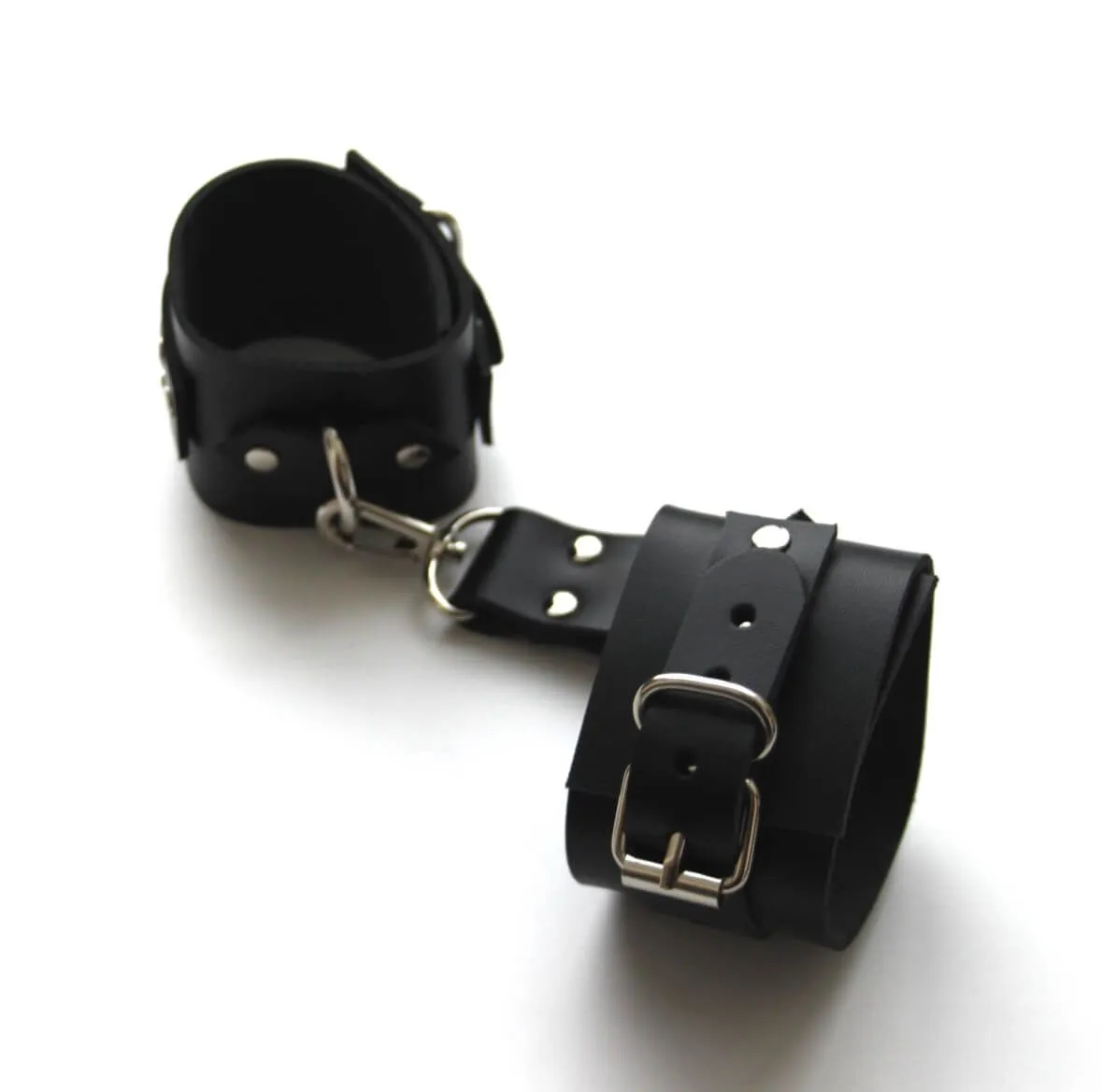 Наручники регулируются по размеру. Натуральная кожа толщиной 2.3 мм.