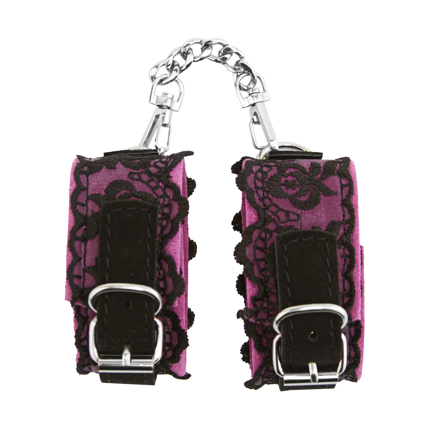 —Наручники замшевые с кружевом на цепочках, розовые