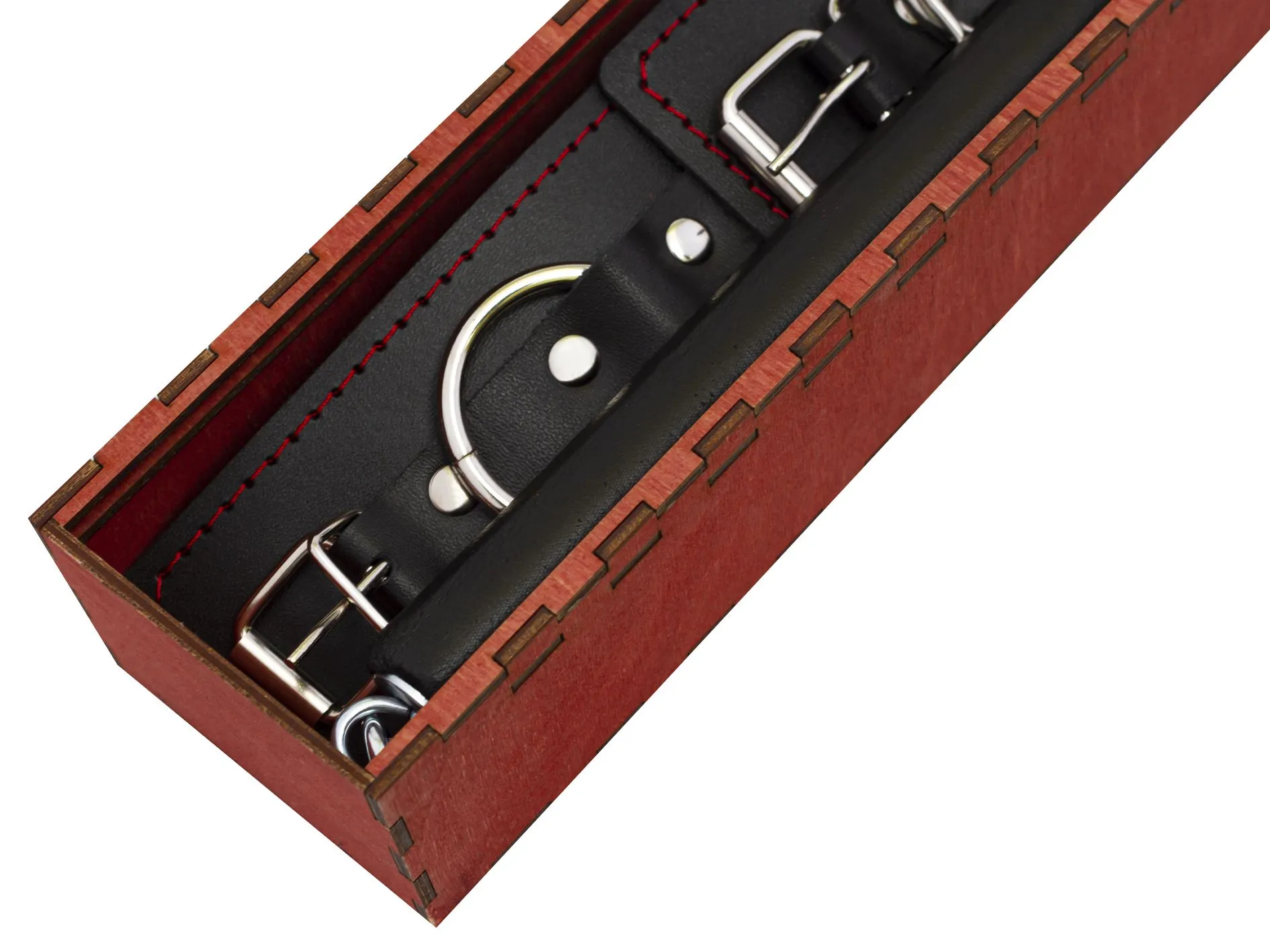 Кожаные части имеют строчку из красной нити в качестве контрастной детали и ремешки для регулирования размеров. Таким образом, игрушки можно использовать, как и все вместе, так и отдельно — всё зависит только от ваших фантазий и ролевого сюжета.
