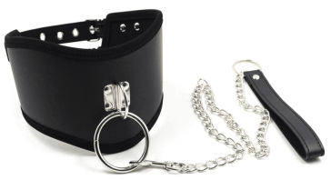 —Ошейник широкий с поводком чёрный