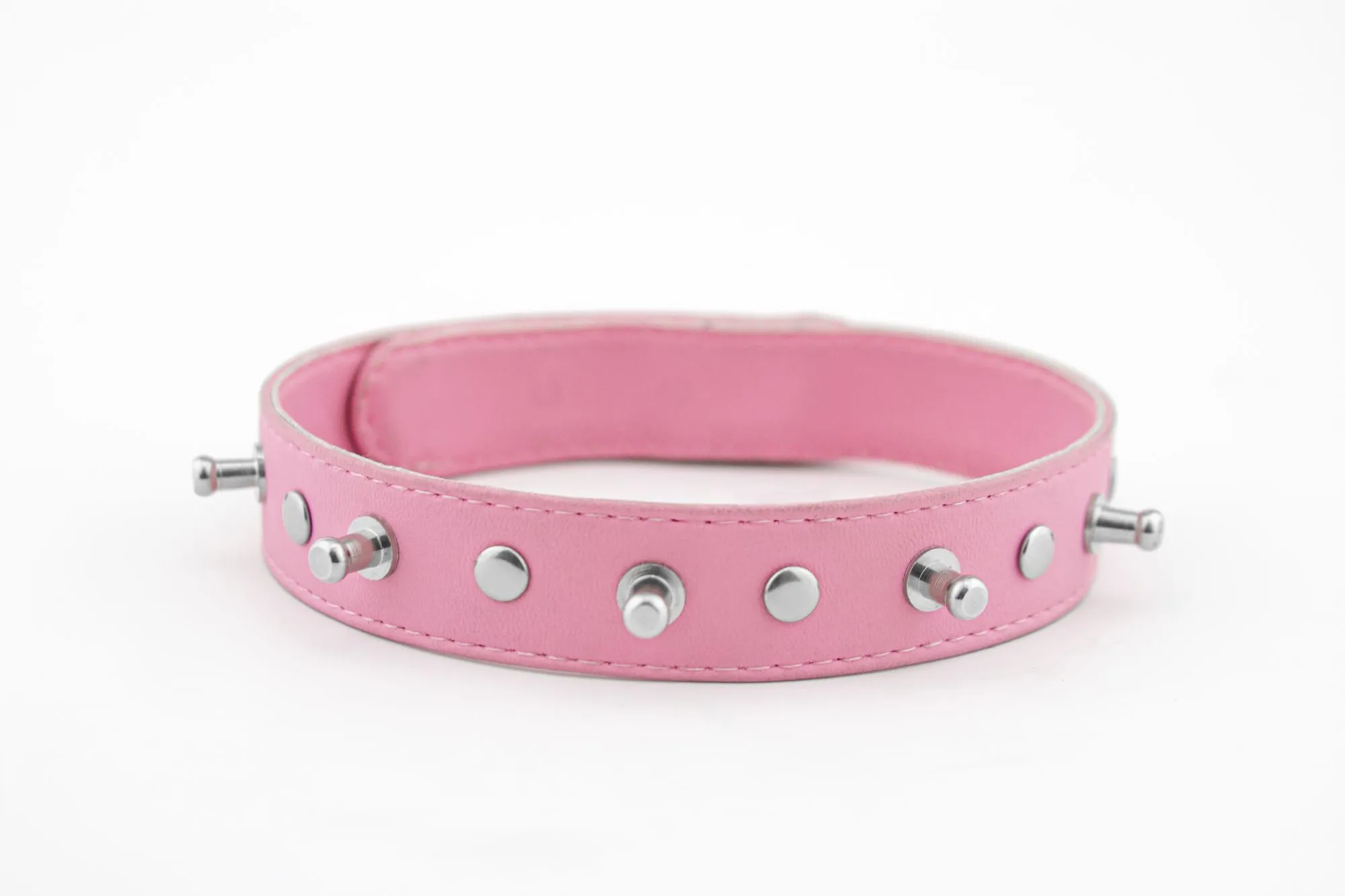 Ошейник 69 Оттенков Розового с мет. шипами и клепками