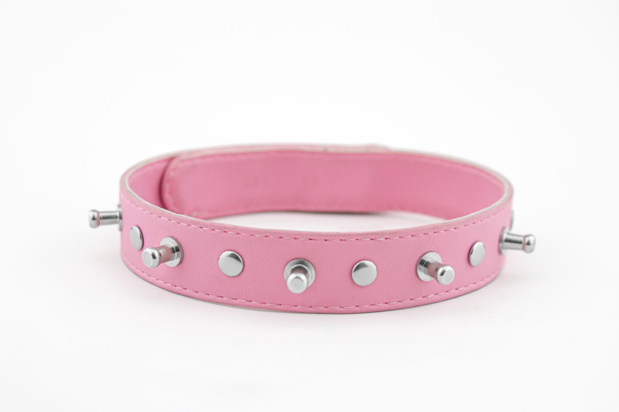 —Ошейник 69 Оттенков Розового с мет. шипами и клепками
