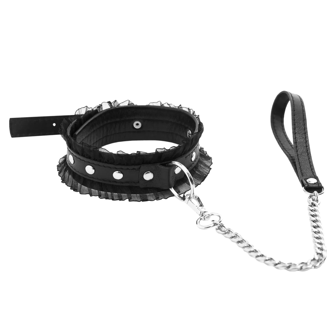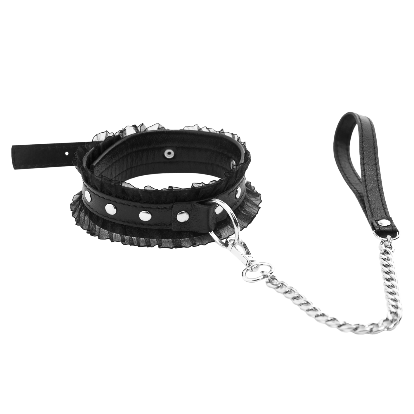 Ошейник PinkRabbit "Шик" с поводком-цепью, чёрный