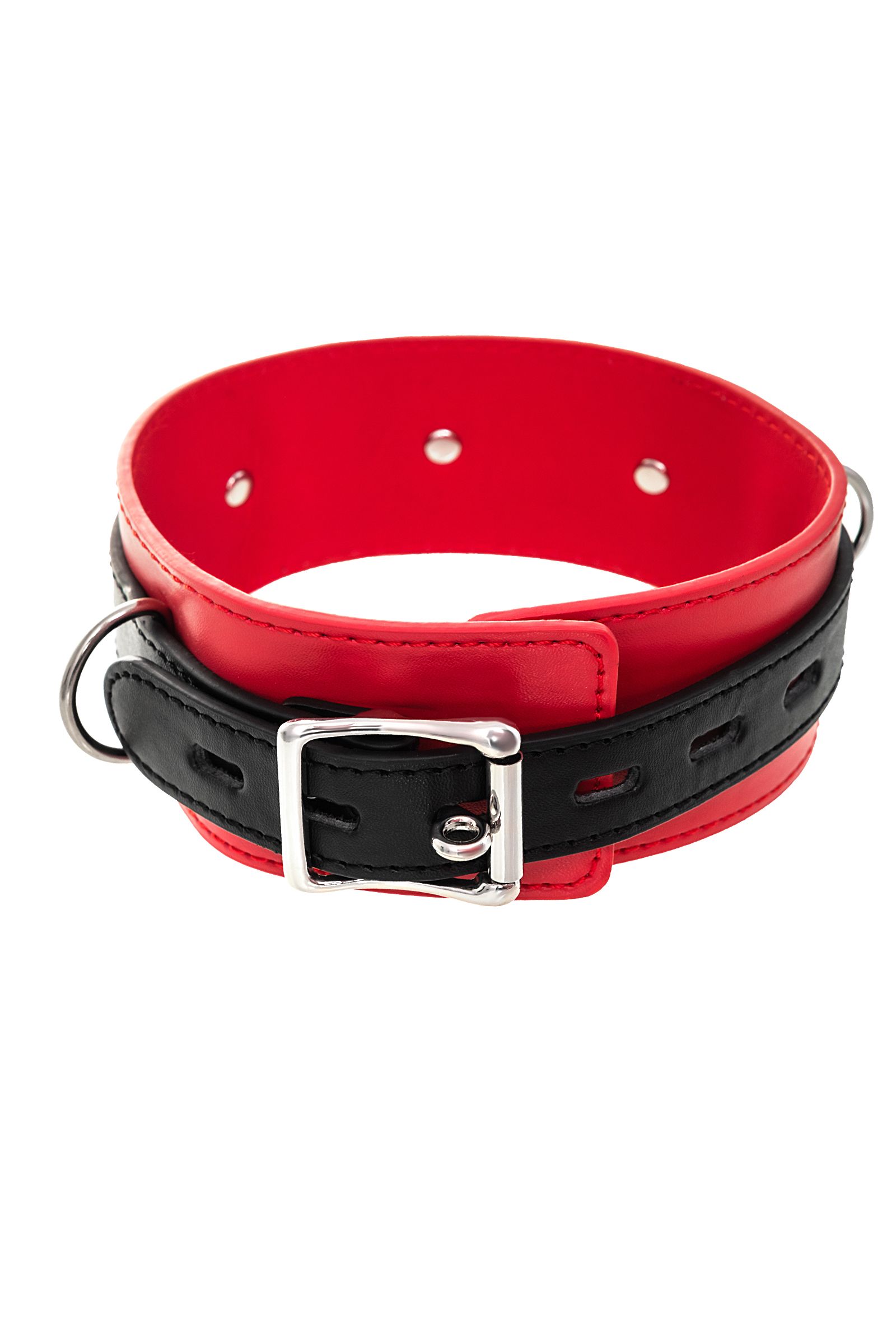 Атрибут для вашего лучшего перфоманса – яркий ошейник. Это не только символ подчинения и доверия, но и изюминка, способная разукрасить вашу интимную жизнь игрой. В этом ошейнике сочетаются элементы, возбуждающие страсть и фантазию: кожа красного и черного цветов и отделка металлическими элементами. Ошейник прекрасно вписывается в любой эротический образ – будь на вас сексуальный комплект белья, или только помада алого цвета. Мягкая кожа нежно облегает шею, а размер легко регулируется надежной металлической пряжкой. Передать власть партнеру легко с помощью поводка длиной 80 см, который крепится к одному из колец. Играйте в доминирование и подчинение в свое удовольствие! Длина ошейника: 43,5 см Ширина ошейника: 5,5 см Длина поводка: 80 см Материал: экокожа