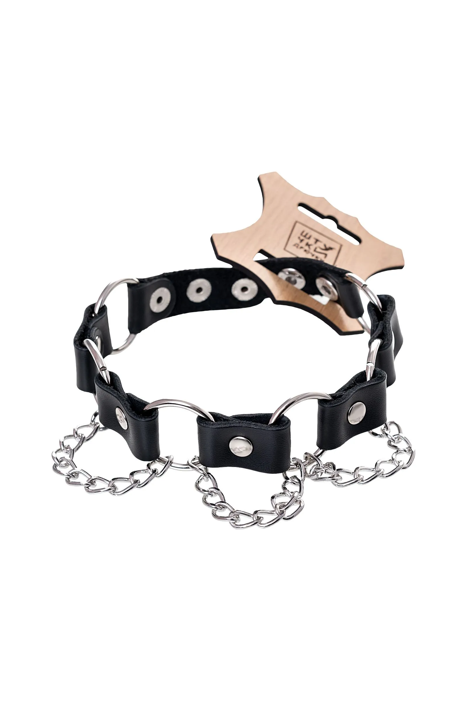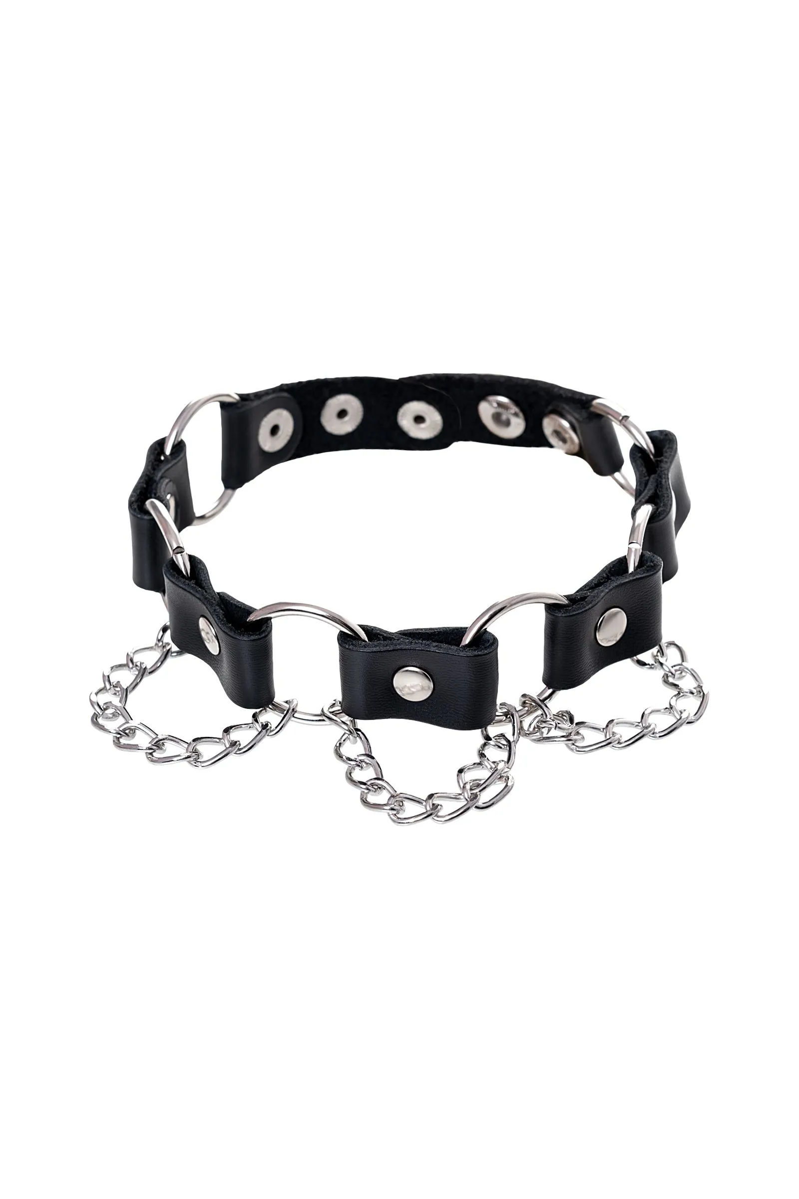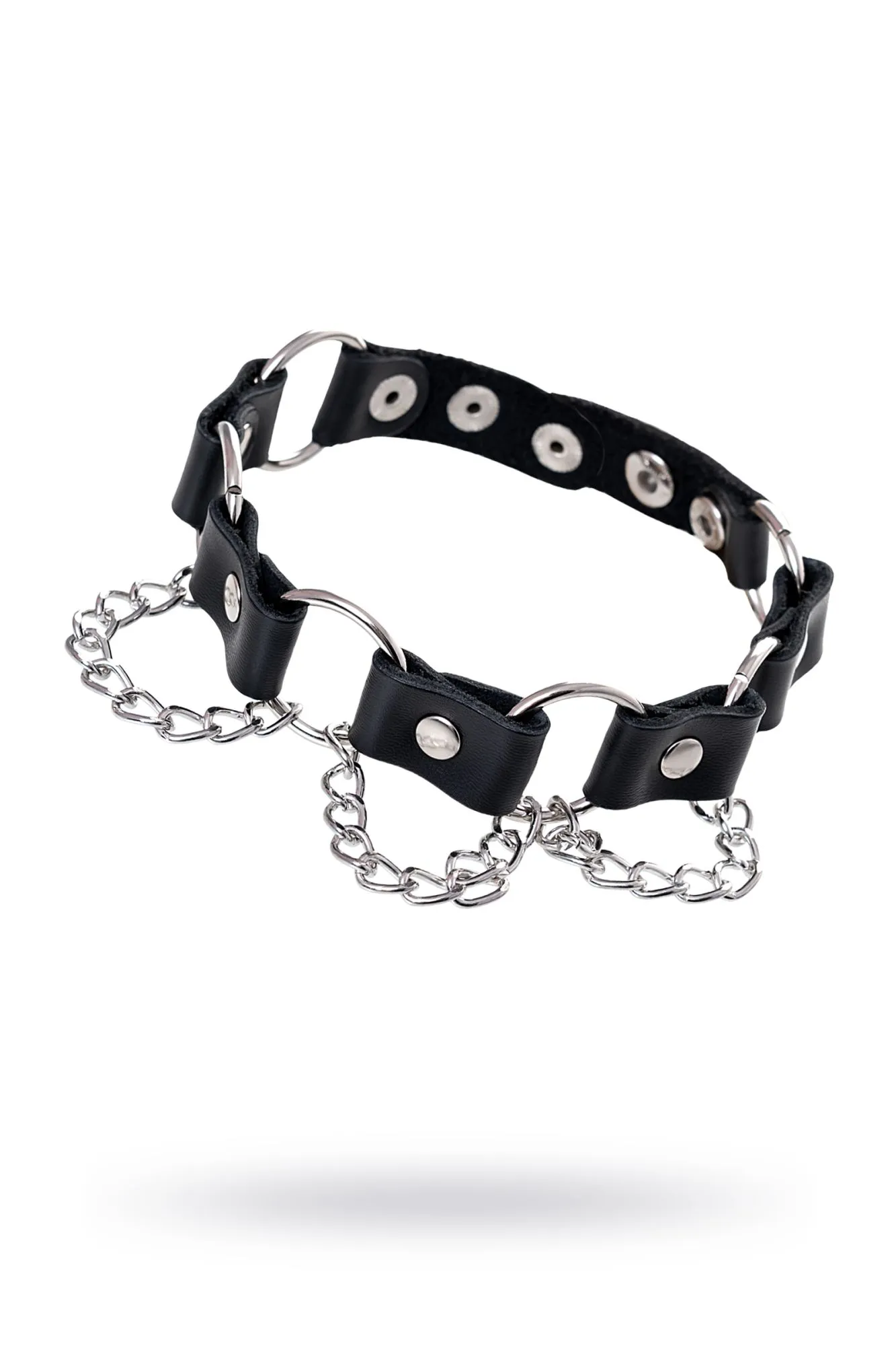 Простота, стиль и удобство – то, что отличает этот БДСМ аксессуар. Ошейник выполнен из натуральной кожи и дополнен элементами из металла. Фиксация на шее за счет кнопок.
