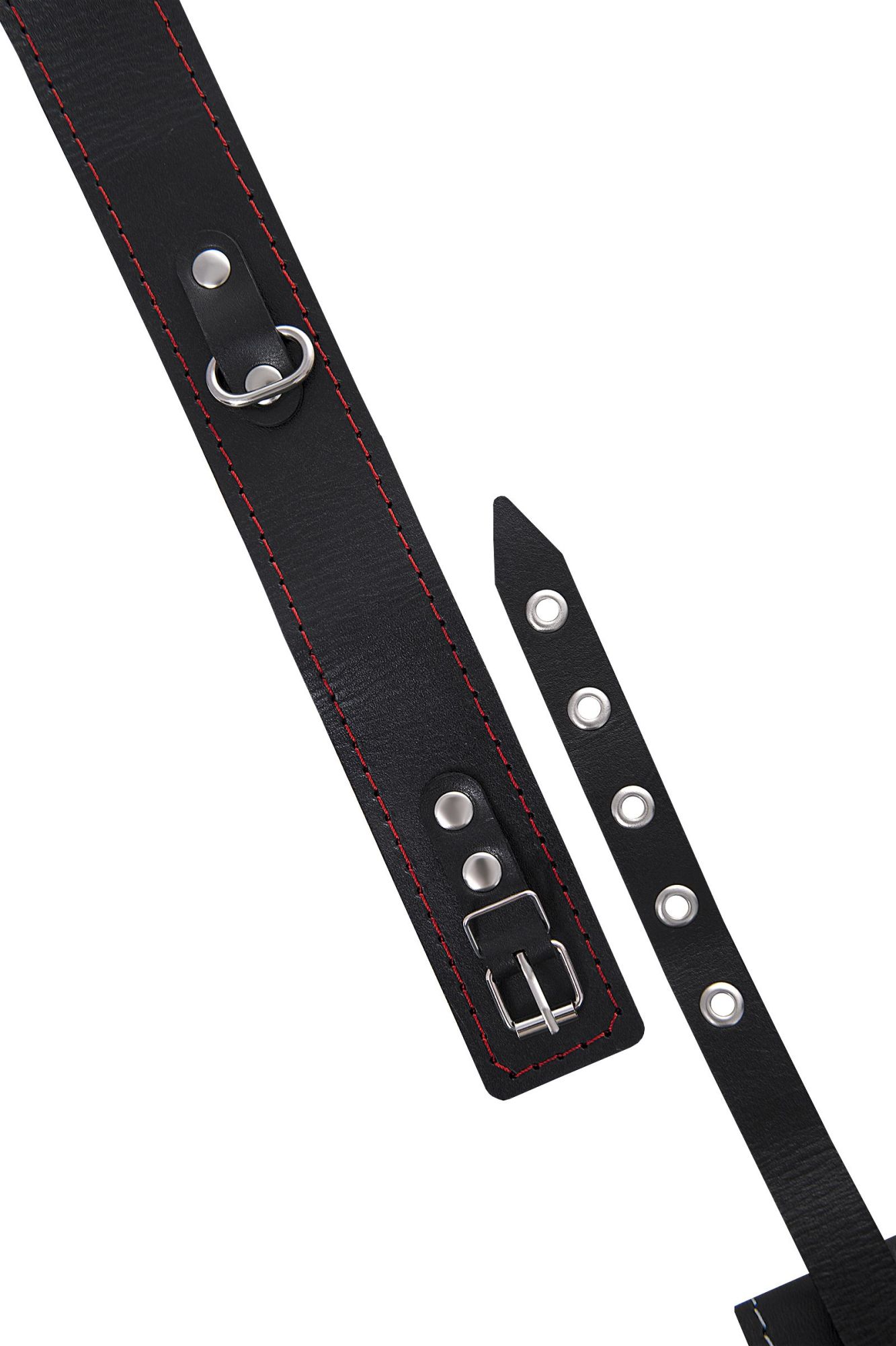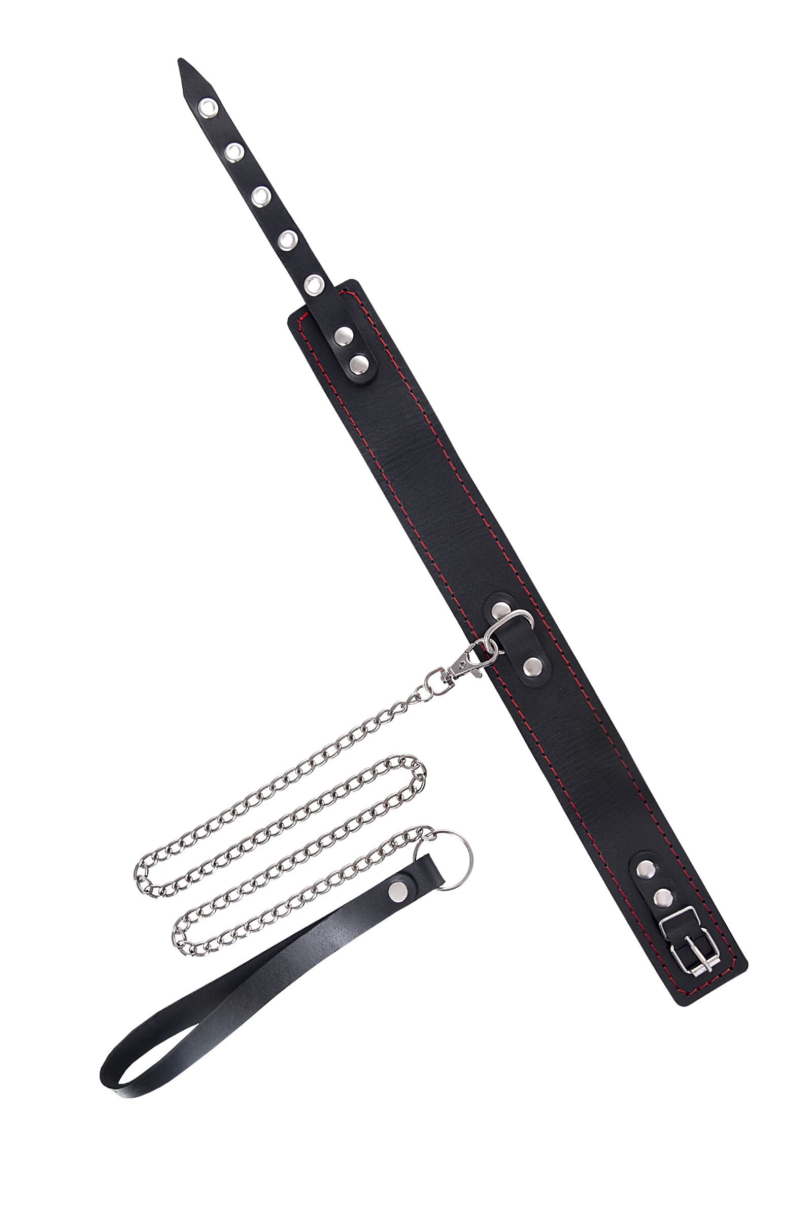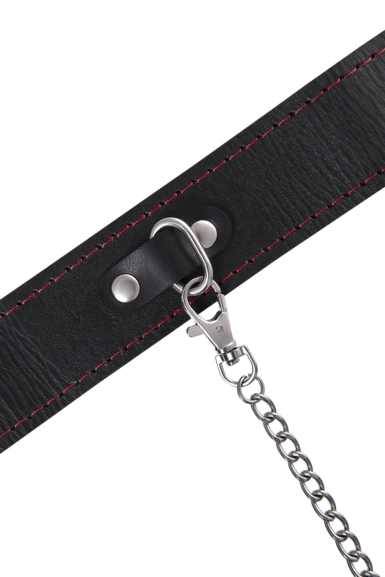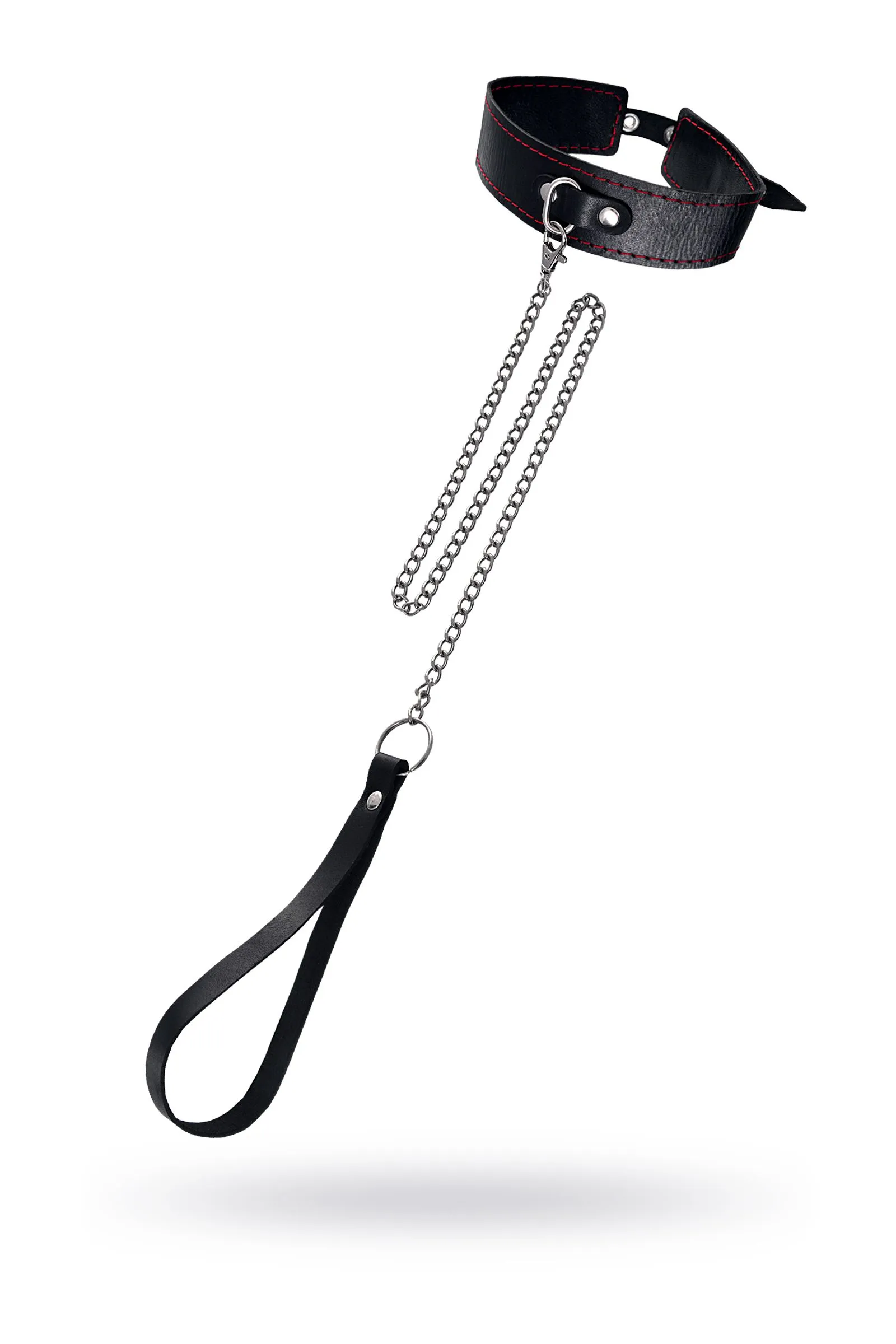 —Ошейник Pecado BDSM, двухслойный с красной строчкой, натуральная кожа, черный