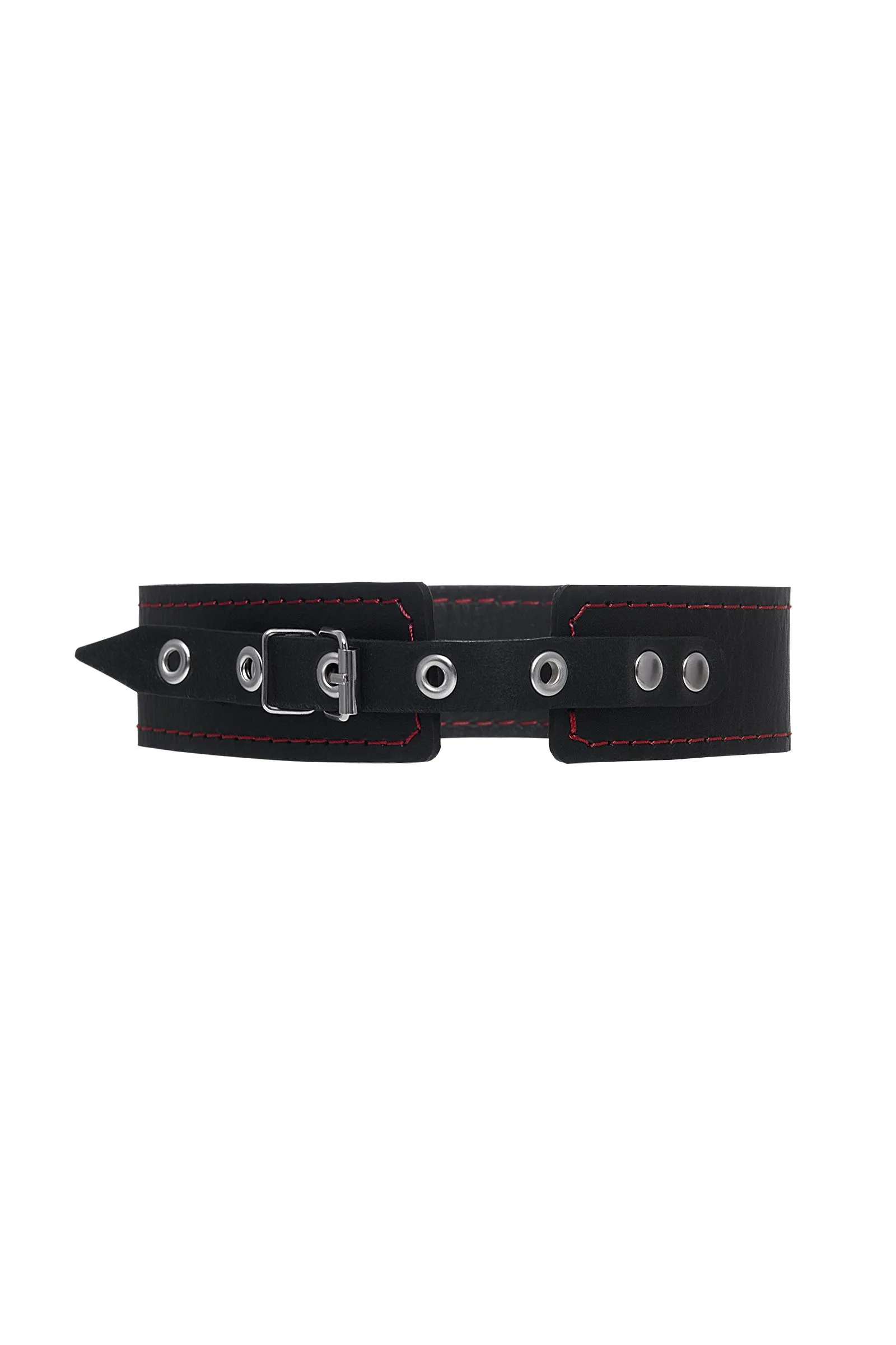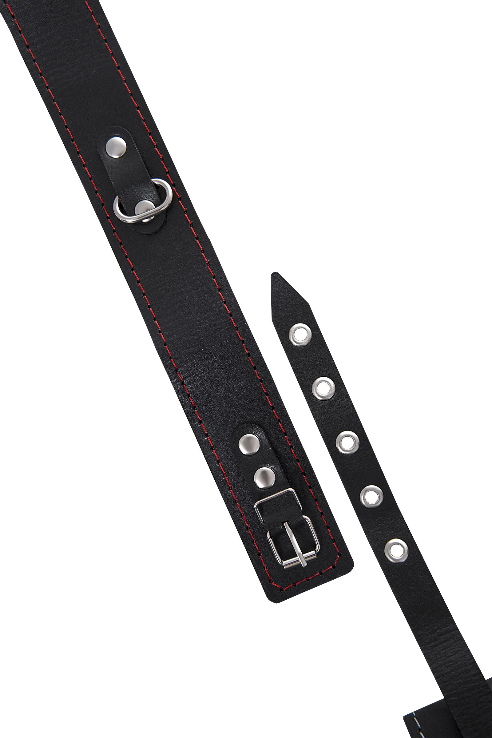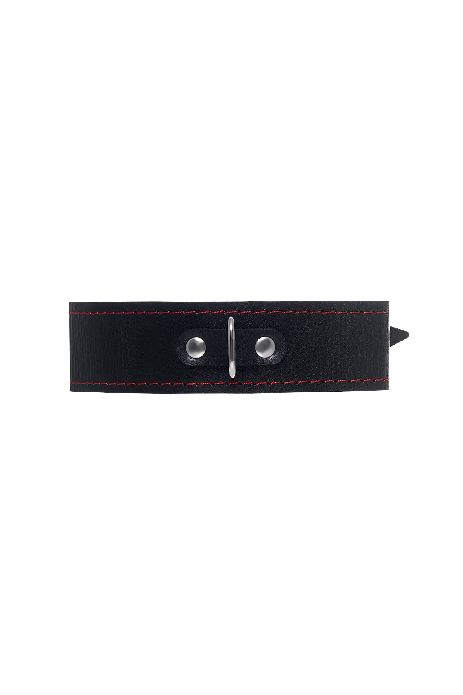 Ошейник Pecado BDSM, двухслойный с красной строчкой, натуральная кожа, черный
