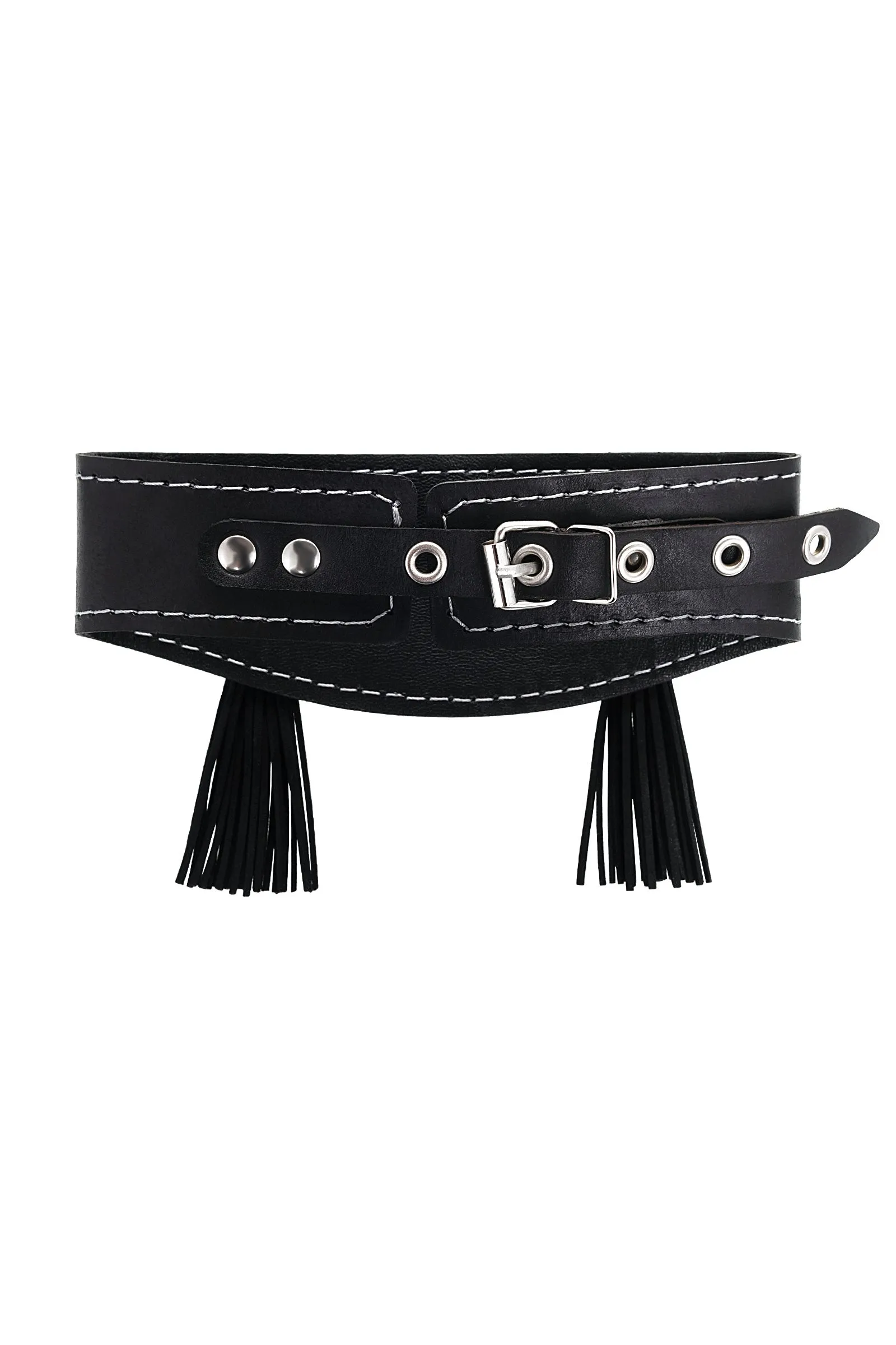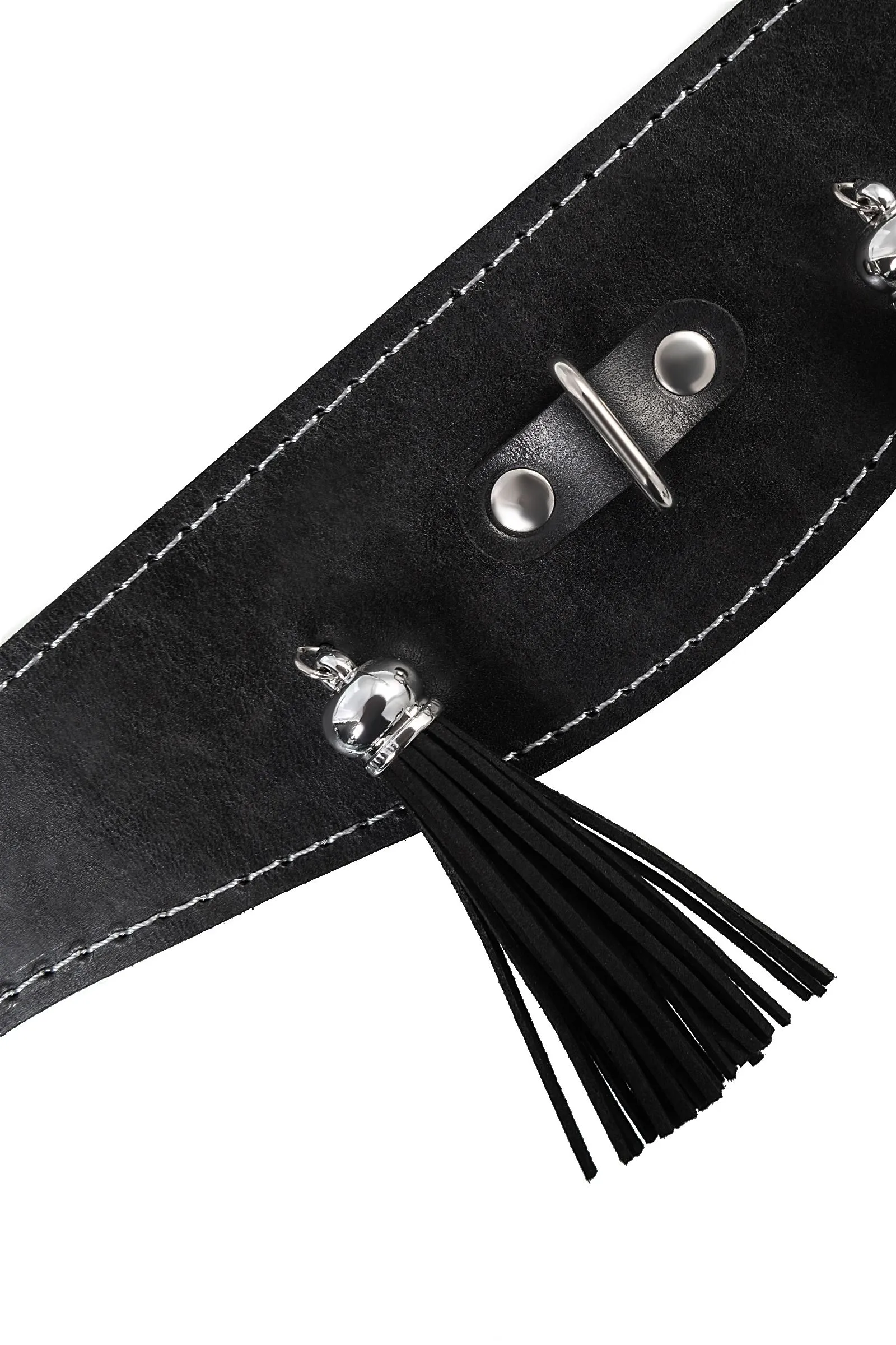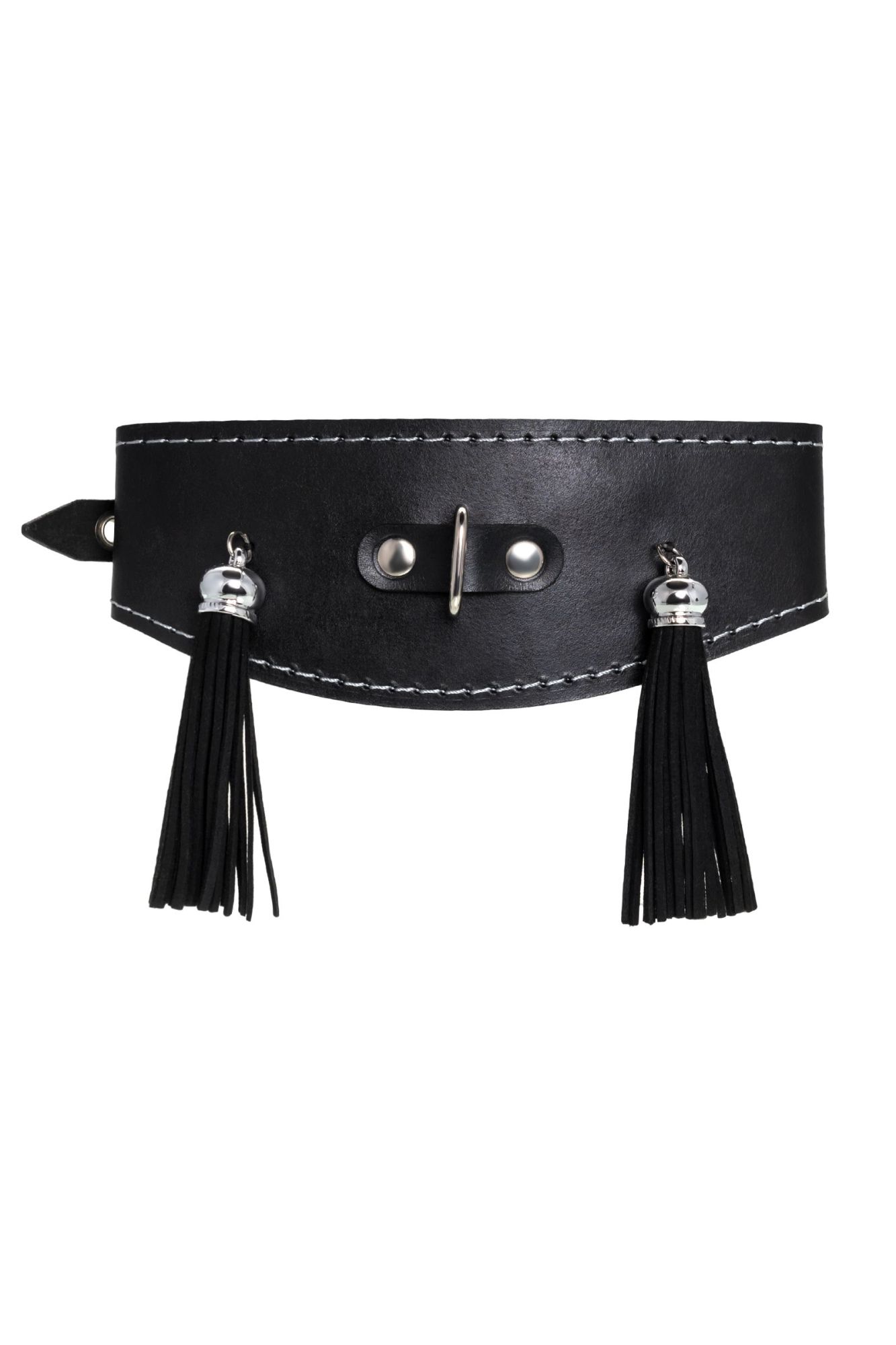Ошейник Pecado BDSM, высокий с кисточками, натуральная кожа, чёрный