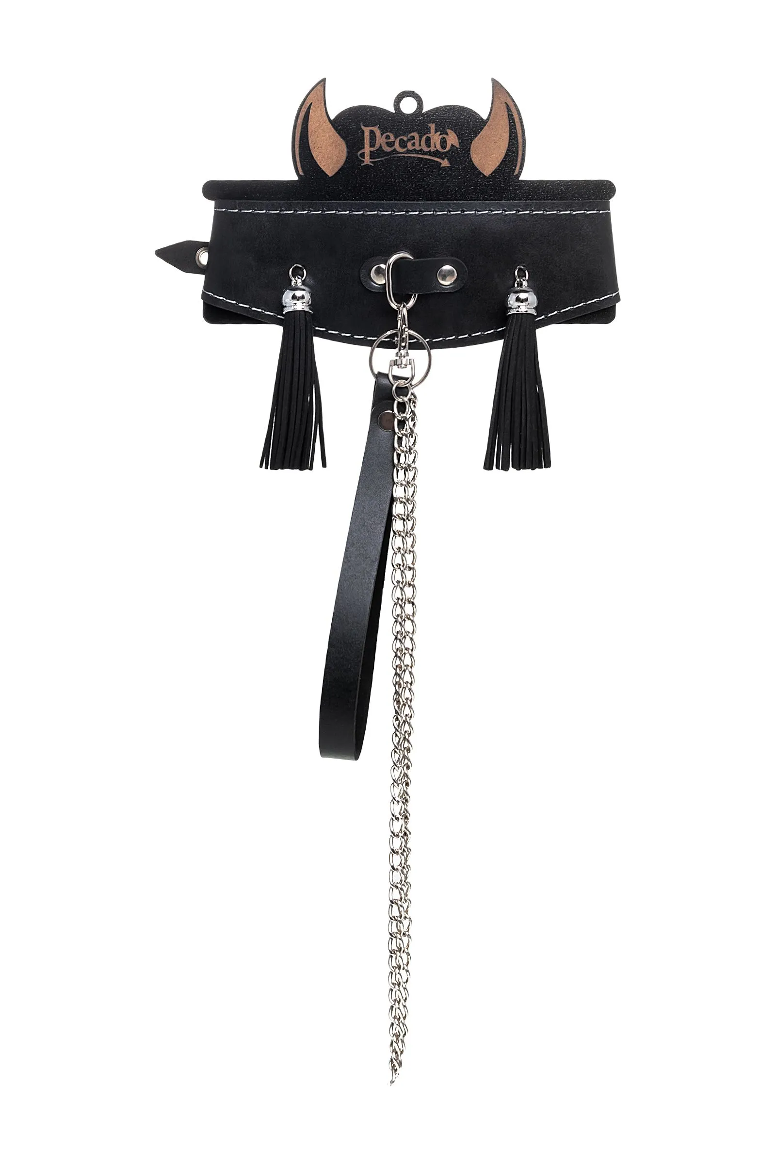 Готовы играть по-взрослому? Не бойтесь своих желаний! Основатели бренда уверены: лучший способ избавиться от искушения - поддаться ему! Добавьте пикантную деталь в ролевую игру и воплотите самую смелую сексуальную фантазию в реальность! Оригинальный дизайнерский ошейник из натуральной кожи с кисточками производства Pecado BDSM с металлическим поводком может стать отличным дополнением в БДСМ-образ. Ошейник может выполнять не только свою первичную функцию — без поводка аксессуар послужит своеобразным украшением и добавит страсти в образ. Добавьте пикантную деталь в ролевую игру и воплотите самую смелую сексуальную фантазию в реальность — взрослые игры для взрослых. Поводок в виде цепочки имеет ручку-петельку для удобства хозяина и крепится надежным стальным карабином к кольцу на ошейнике. Легко отстегивается и превращает ошейник в чокер, который легко вписать в любой образ. К металлическому кольцу также можно присоединить и другие аксессуары при помощи карабинов. Благодаря универсальному размеру ошейник может использоваться как женщинами, так и мужчинами – размер легко регулируется с помощью металлической пряжки, органично вписывающейся в общий стиль. Ширина ошейника 4-7 см, длина ошейника 38 см, длина поводка 80 см. Pecado BDSM – российский бренд, использующий высококачественные материалы и надежную, проверенную временем фурнитуру. Все изделия изготавливаются вручную из натуральной кожи, безопасный и экологичный материал не оставляет повреждений на запястьях. Натуральная кожа, металлические крепления и ремешки дают уверенность в надежной фиксации, устойчивости к механическим нагрузкам и долговременном использовании. Ширина ошейника — 4-7 см. Длина ошейника — 38 см. Длина поводка — 80 см.
