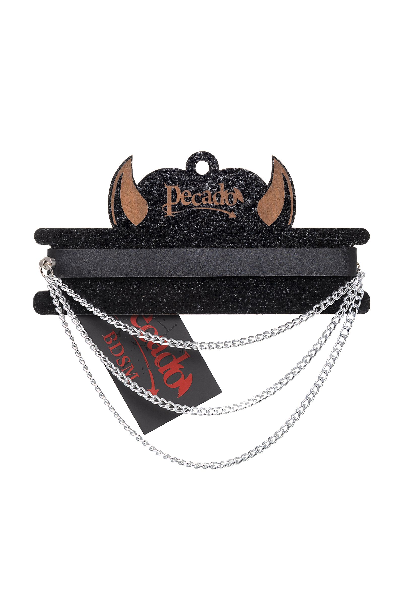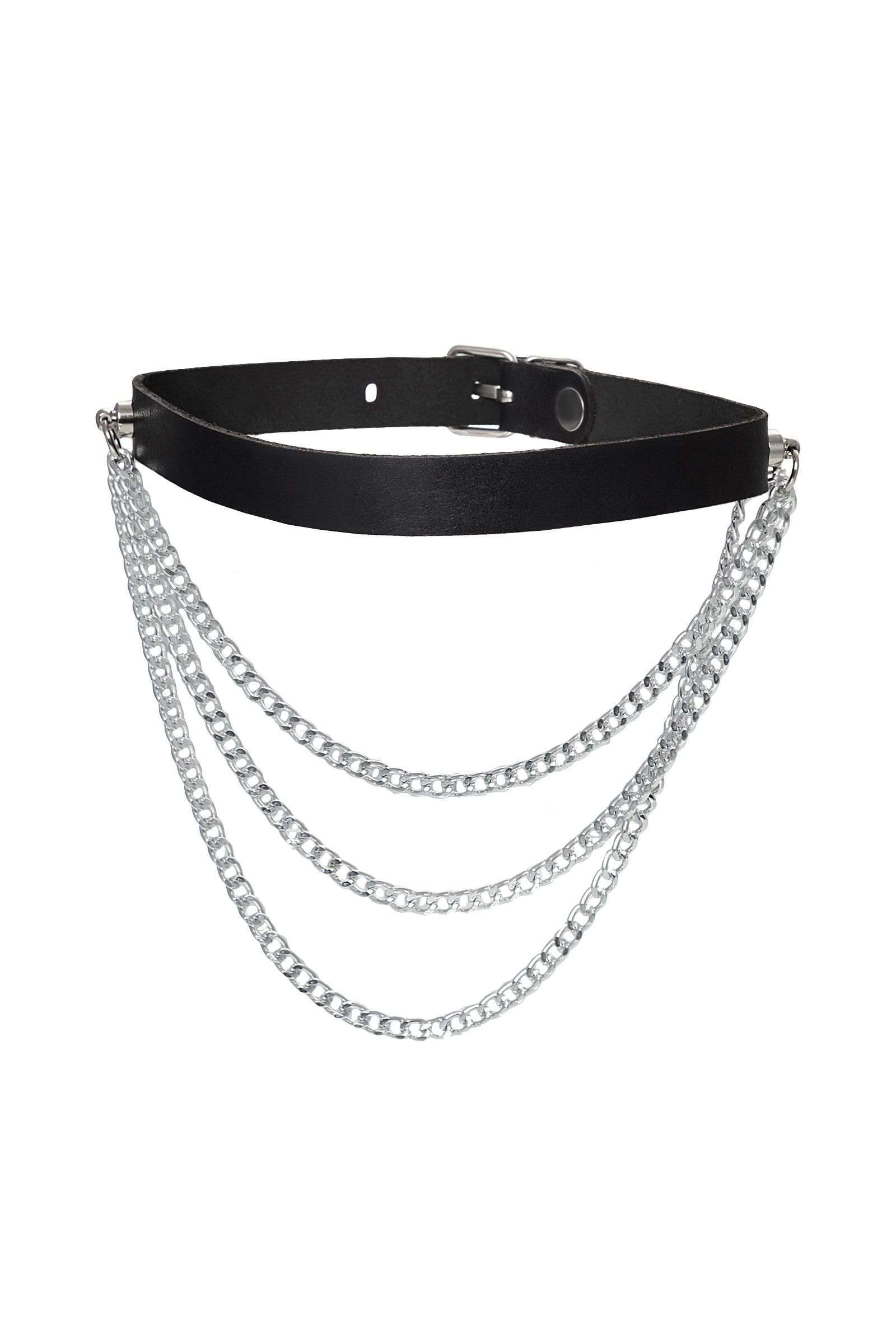 —Чокер Pecado BDSM, с цепочками, модель 1, натуральная кожа, черный