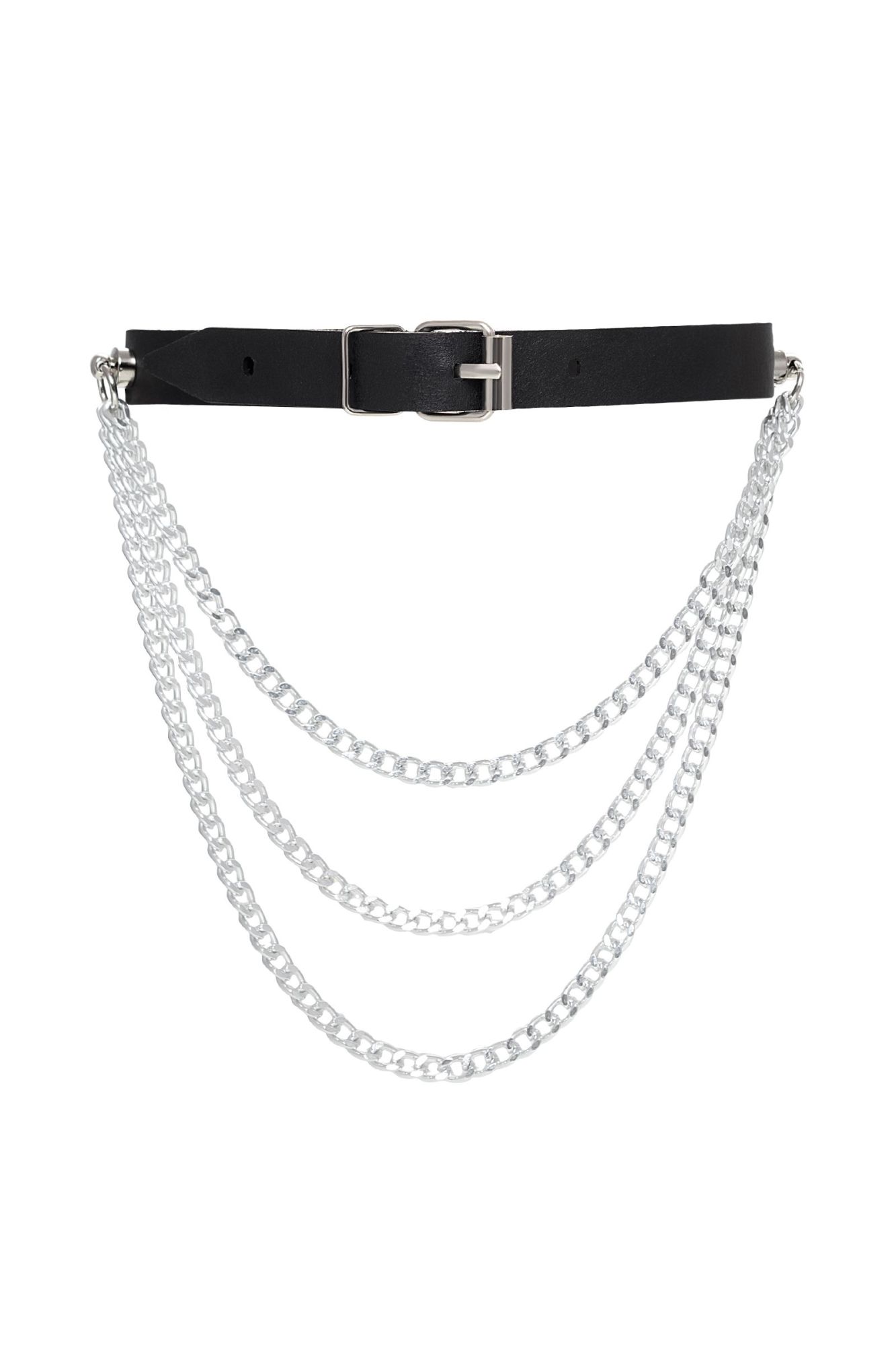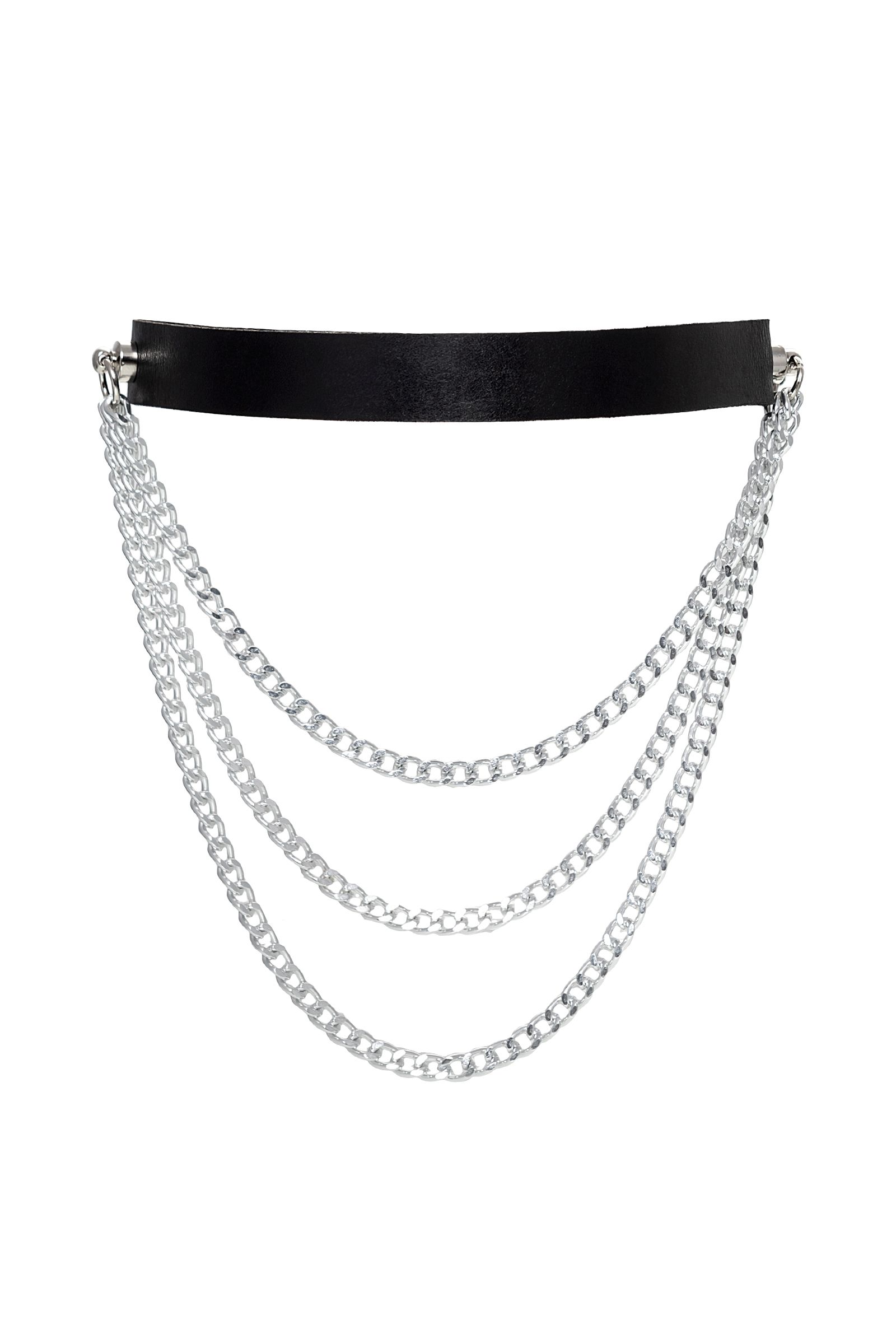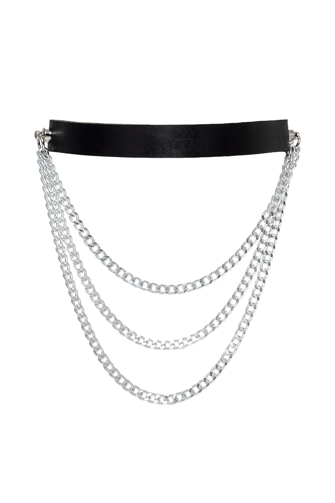 Чокер Pecado BDSM, с цепочками, модель 1, натуральная кожа, черный