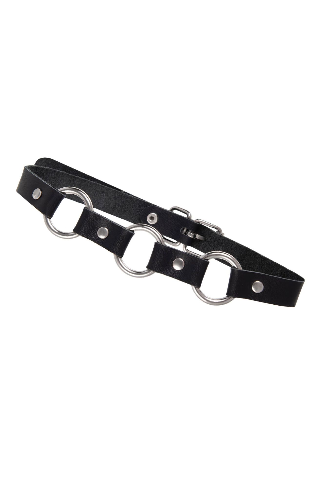 Чокер-ошейник Pecado BDSM, с кольцами в виде цепочки, натуральная кожа, чёрный