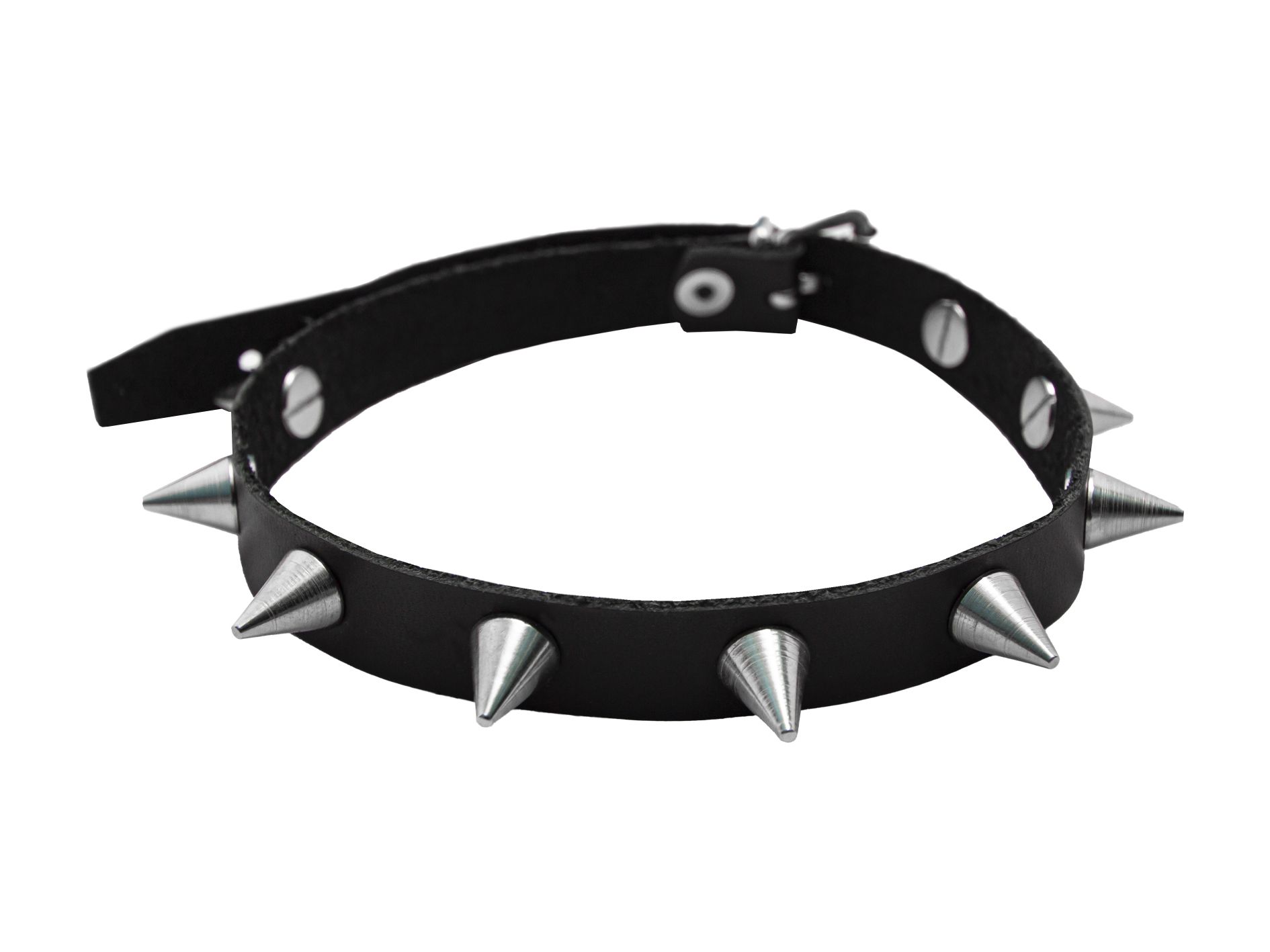 Ошейник тонкий PinkRabbit с шипами, чёрный