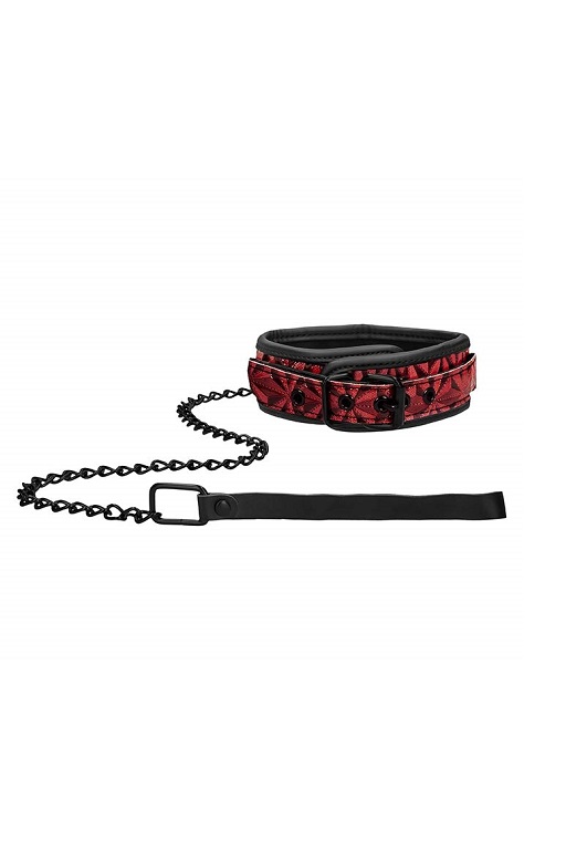 Широкий ошейник с поводком Luxury Collar with Leash - атрибут подчинения для эротических ролевых игр и практик БДСМ. Он выполнен из эффектного тисненого винила с мягкой и прочной подкладкой, которая обеспечивает нежное прикосновение и не раздражает даже чувствительную кожу. Сочетание бургундского красного с черным делают аксессуар более эффектным и роскошным. На внешней части внизу ошейника имеется небольшое D-образное колечко, за которое можно зацепить входящий в комплект поводок в виде зачерненной металлической цепочки с фиксацией с помощью кожаной петли на запястье.