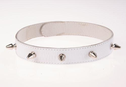 —Ошейник кожаный белый шириной 20мм с шипами длиной 12мм на кнопках 3102-3