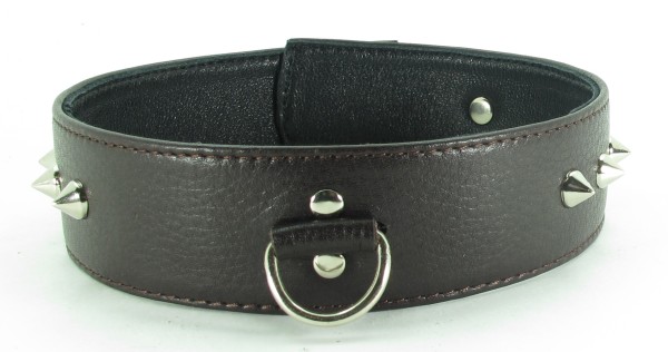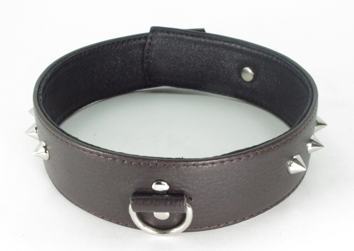 Ошейник для БДСМ игр в качестве наказания за провинность. Фетиш-изделие коричневого цвета с хромированными заклепками, которые добавляют аксессуару дерзости. В ошейник вставлено D-кольцо, с ними фетиш-изделие соединяется с бандажом или поводком. Вы символически посвящаете партнера в сексуальное рабство, ведущая роль всецело принадлежит именно Вам. Характеристики ошейник кожаный с клепками: цвет – коричневый, материал – кожа, макс. ширина в передней части – 3,8 см.