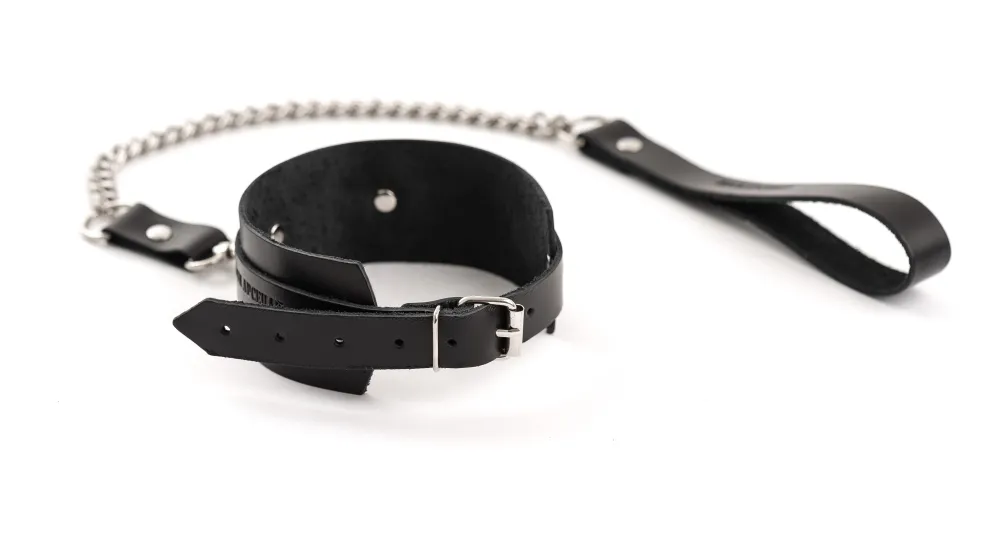 Ошейник в лаконичном дизайне, выполнен из качественной, натуральной кожи. Впереди декорирован серебристым кольцом. В комплекте поводок из металла с удобной кожаной ручкой. Размер универсальный, регулируется с помощью ремешка. Упокованы ошейник с поводком в картонную коробку.