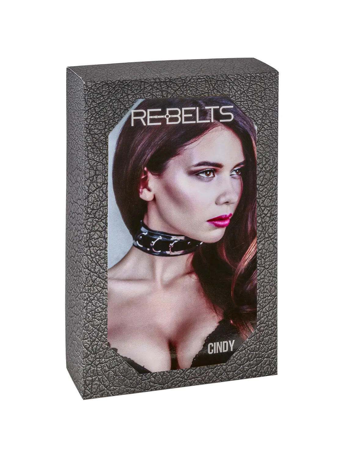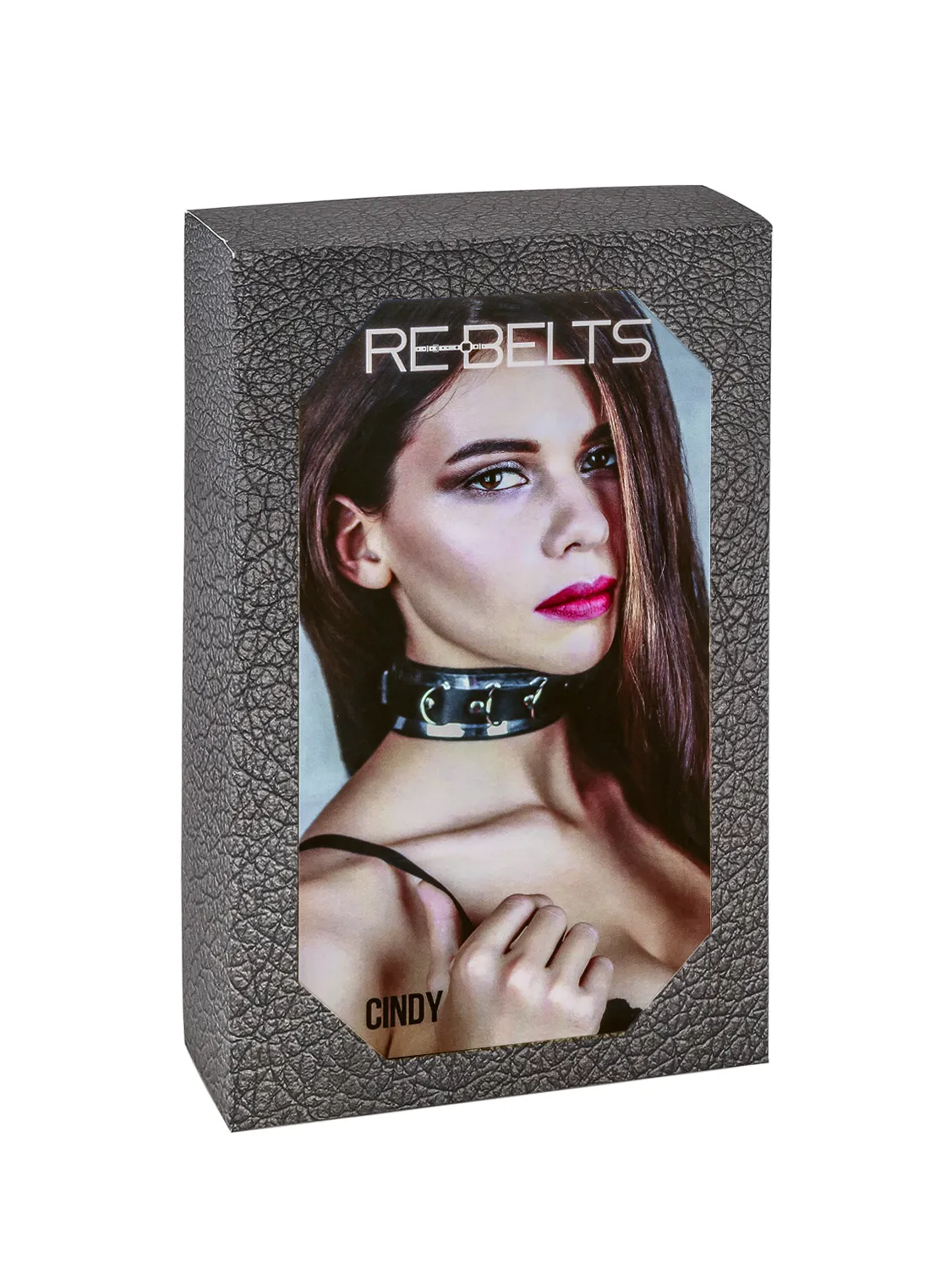 Черный ошейник из натуральной кожи с зеркальной отделкой. В ошейник вставлены 7 D-колец, с ними фетиш-изделие соединяется с бандажом или поводком. Ширина ошейника- 4 см, длина ошейника- 36 см, застежка имеет 15 отверстий для регулировки размера. Упаковка: картонная подарочная упаковка.