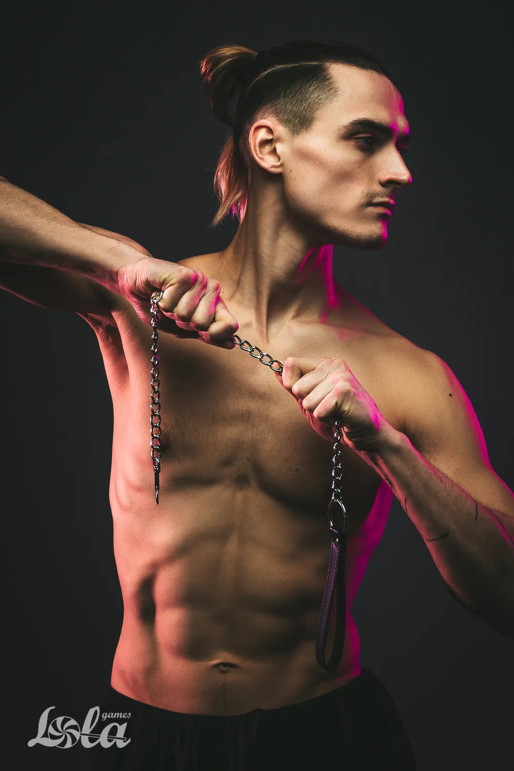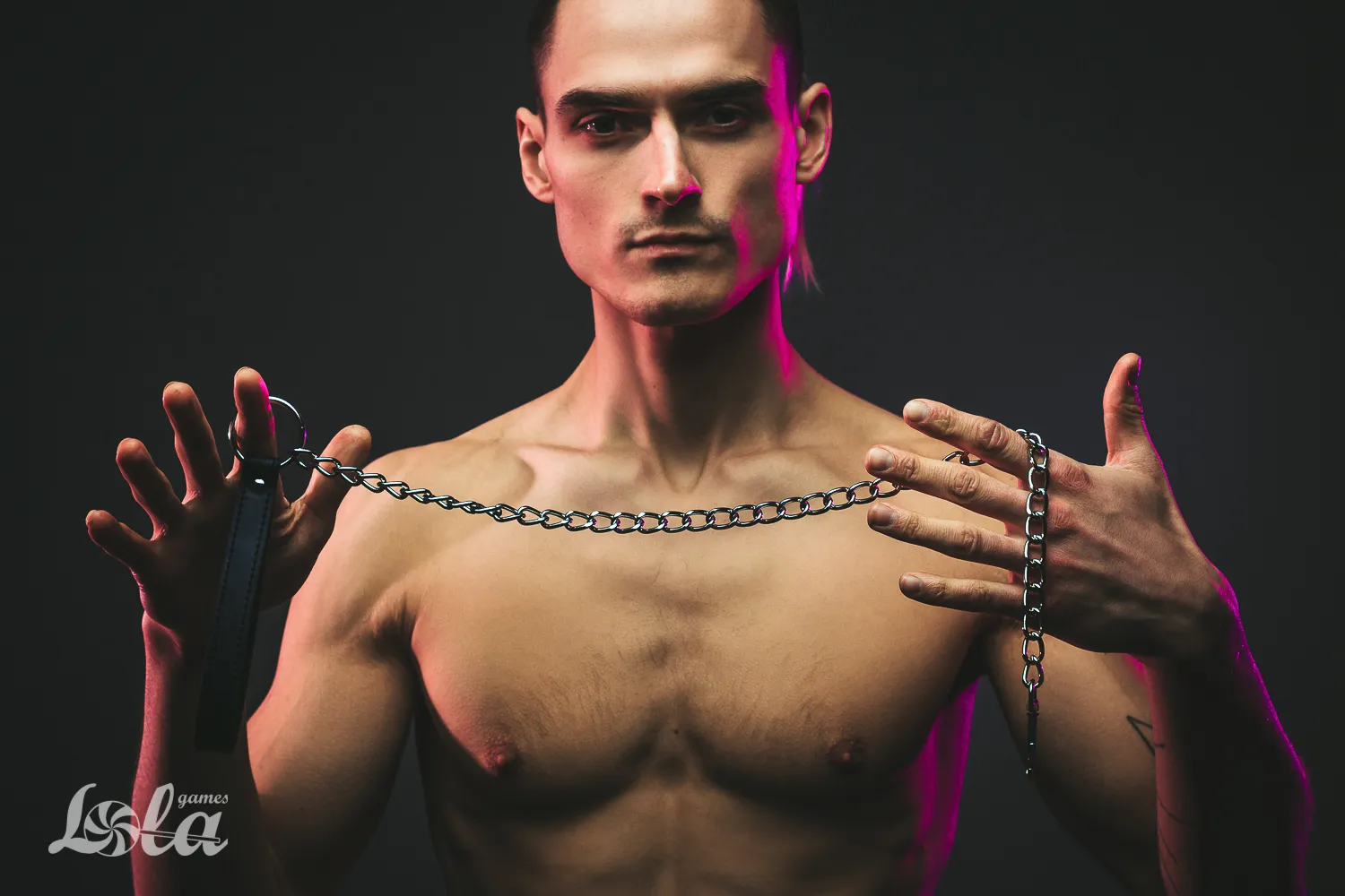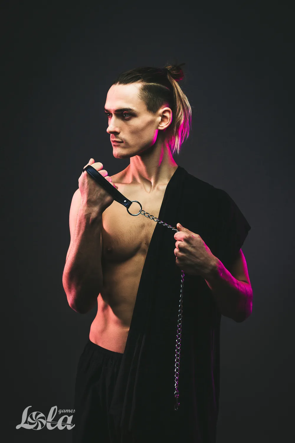 Металлический поводок для ошейника с черной ручкой. Раб должен знать свое место. Он должен сидеть на привязи, как домашний питомец. Должен уметь выполнять команды. А чтобы так все и было нужен хороший ошейник БДСМ. Так что раб будет на привязи и всегда можно дернуть поводок, чтобы питомец прильнул к вашим ногам. Материал: ПВХ Длина поводка: 80 см.