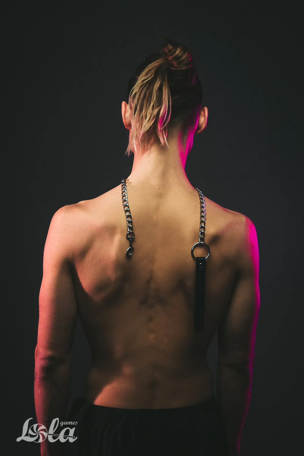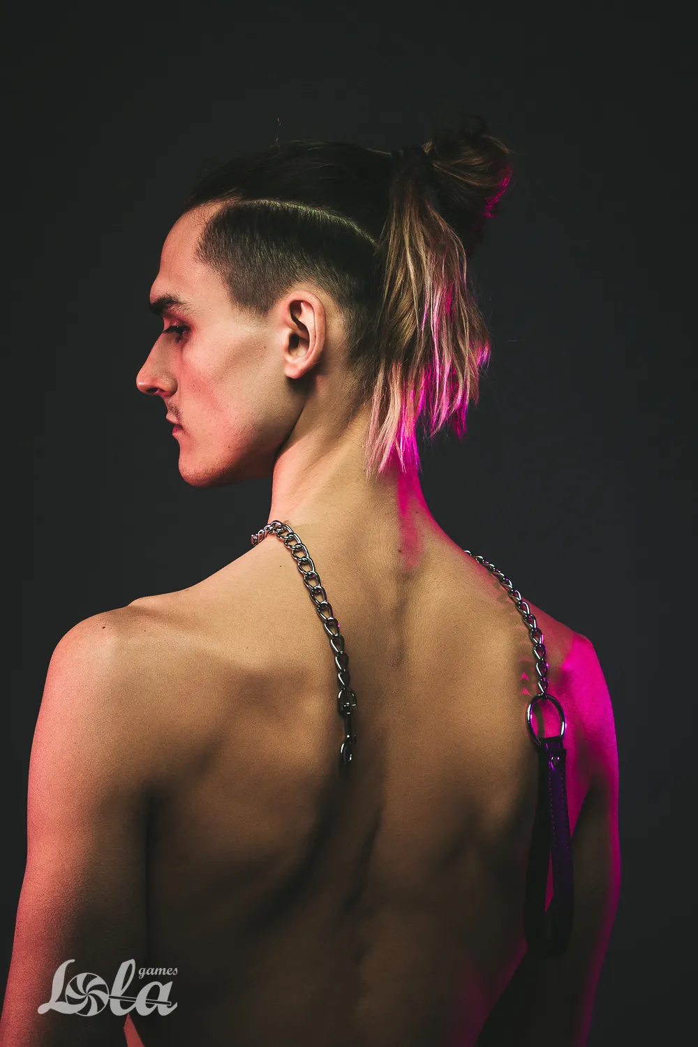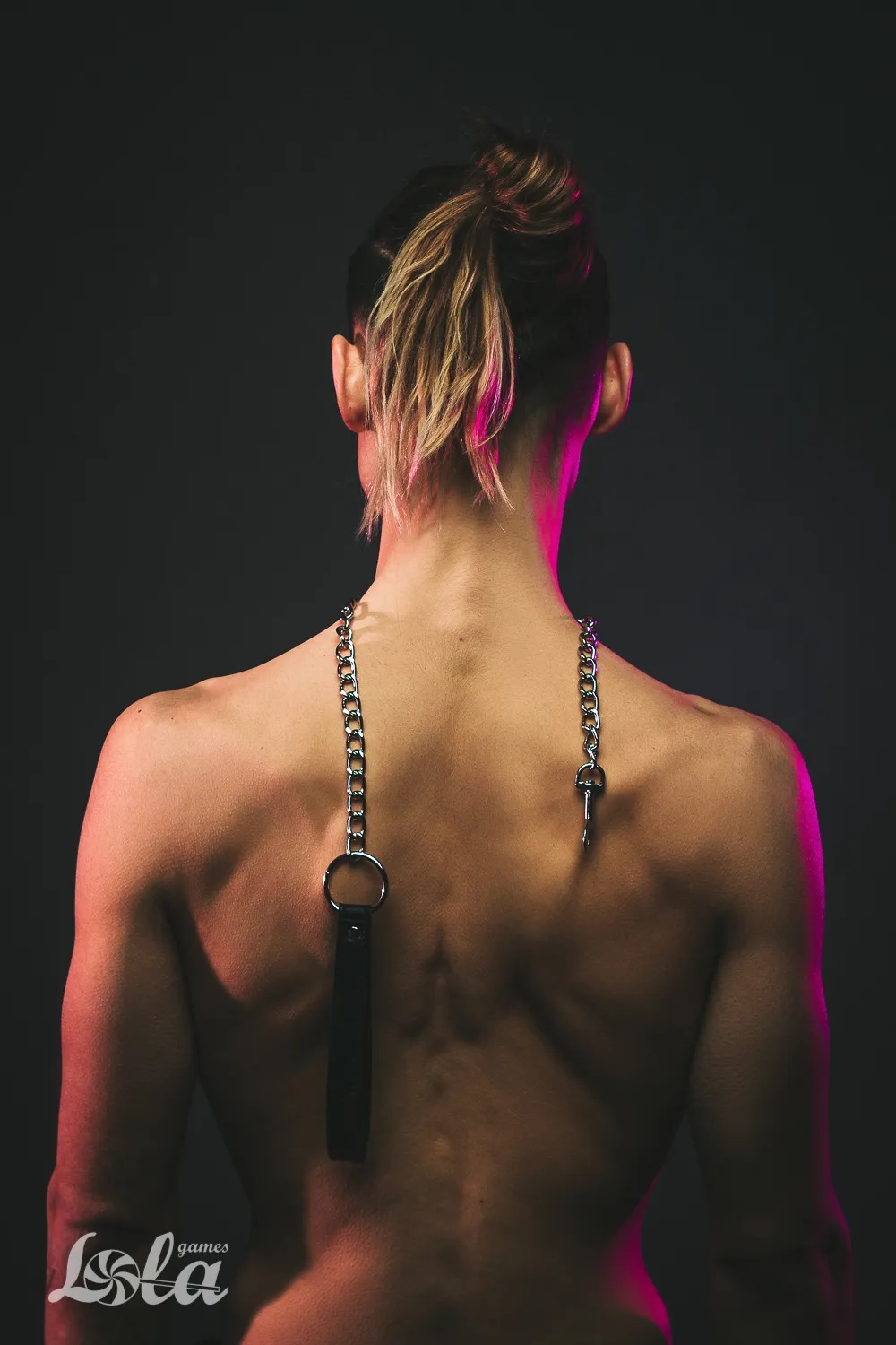 Металлический поводок для ошейника с черной ручкой. Раб должен знать свое место. Он должен сидеть на привязи, как домашний питомец. Должен уметь выполнять команды. А чтобы так все и было нужен хороший ошейник БДСМ. Так что раб будет на привязи и всегда можно дернуть поводок, чтобы питомец прильнул к вашим ногам. Материал: ПВХ Длина поводка: 80 см.