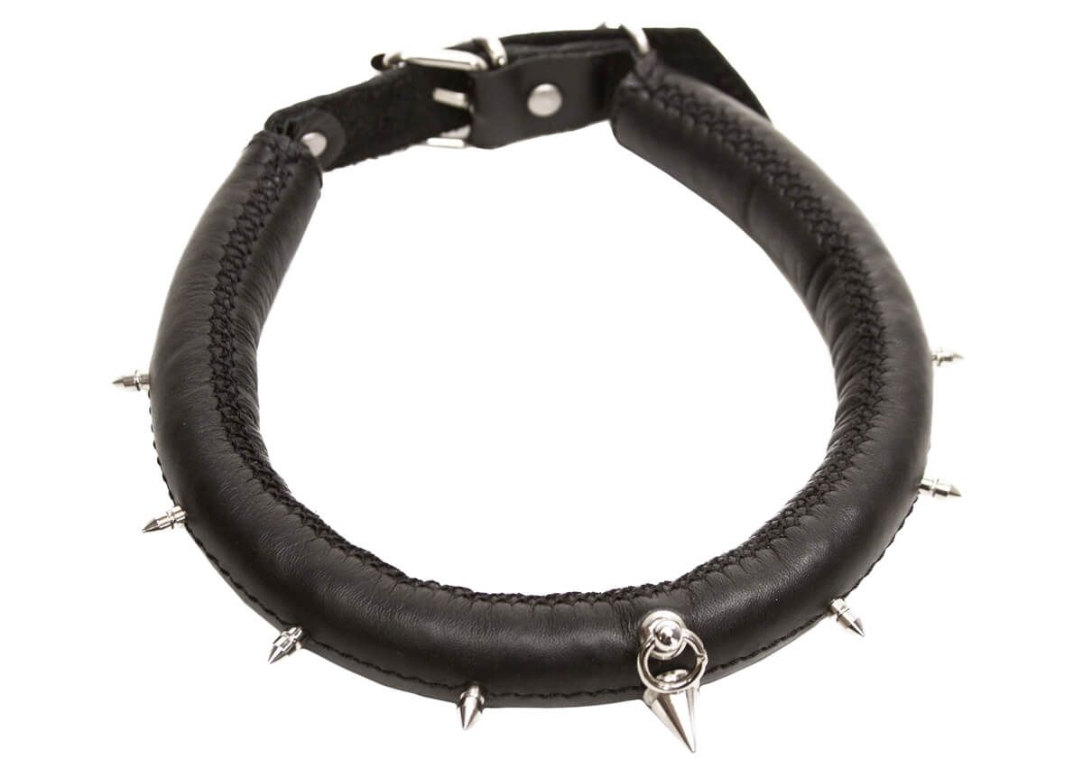 Поклонникам ролевых интимных игр придется по вкусу этот черный кожаный ошейник. Он декорирован металлическими шипами, благодаря которым он выглядит невероятно эффектно. У ошейника есть небольшое колечко, за которое его можно пристегнуть к поводку (в комплект не входит) за небольшой карабин, чтобы добавить играм еще большее разнообразие. Изделие прекрасно подойдет для БДСМ развлечений и позволит реализовать самые нескромные сексуальные фантазии.